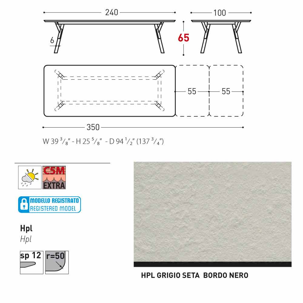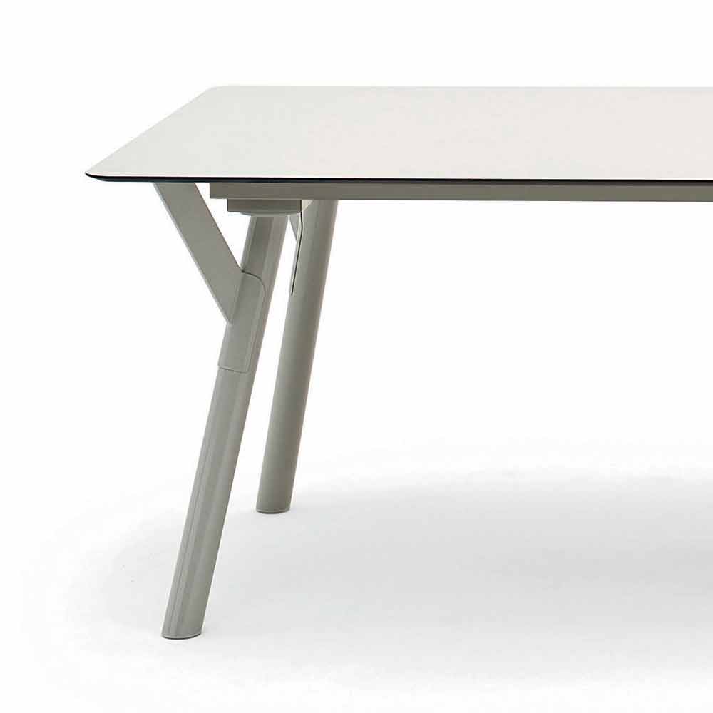 Link est un table de salle à manger avec une structure (cadre+ pieds) en acier inoxydable verni. Le plateau est disponible en HPL ( épaisseur 12 mm) ou en bois de teak ( épaisseur 30 mm ). Grâce à son design polyvalent la table extensible Link peut être utilisée aussi bien à l'extérieur qu'à l'intérieur.