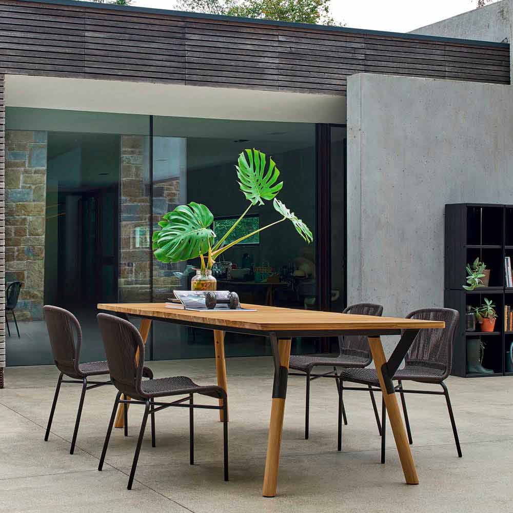 Varaschin Link table de repas de jardin, pieds en bois de teak, H65 cm