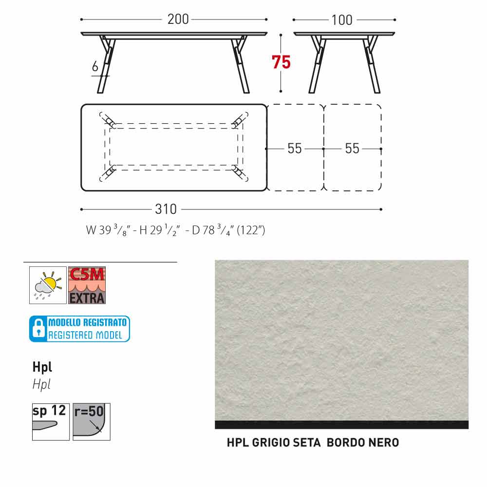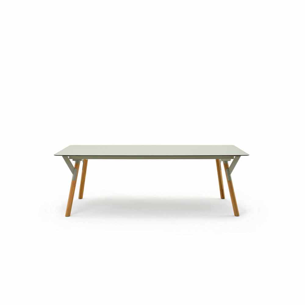 Link est un table de salle à manger avec un cadre en acier inoxydable verni et pieds en bois de teak. Le plateau est disponible en HPL ( épaisseur 12 mm) ou en bois de teak ( épaisseur 30 mm ). Grâce à son design polyvalent la table de repas à rallonge Link peut être utilisée aussi bien dans le jardin que dans la salle à manger.