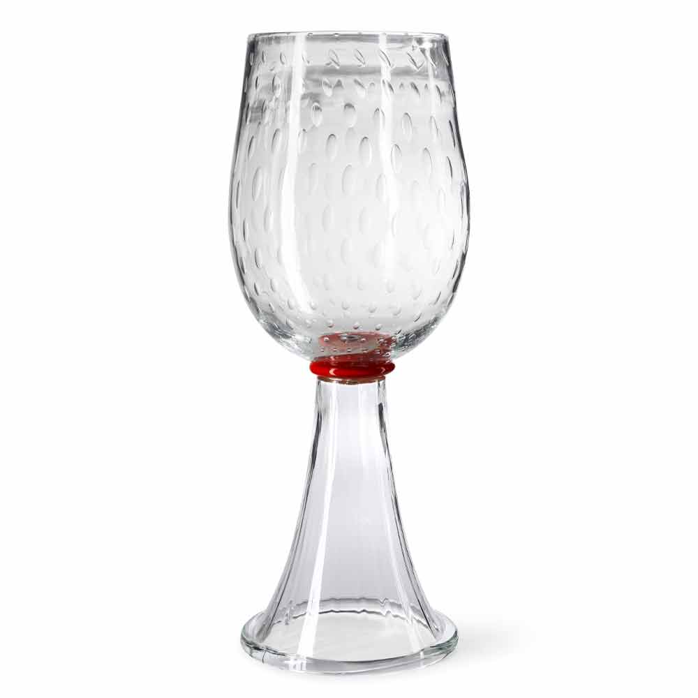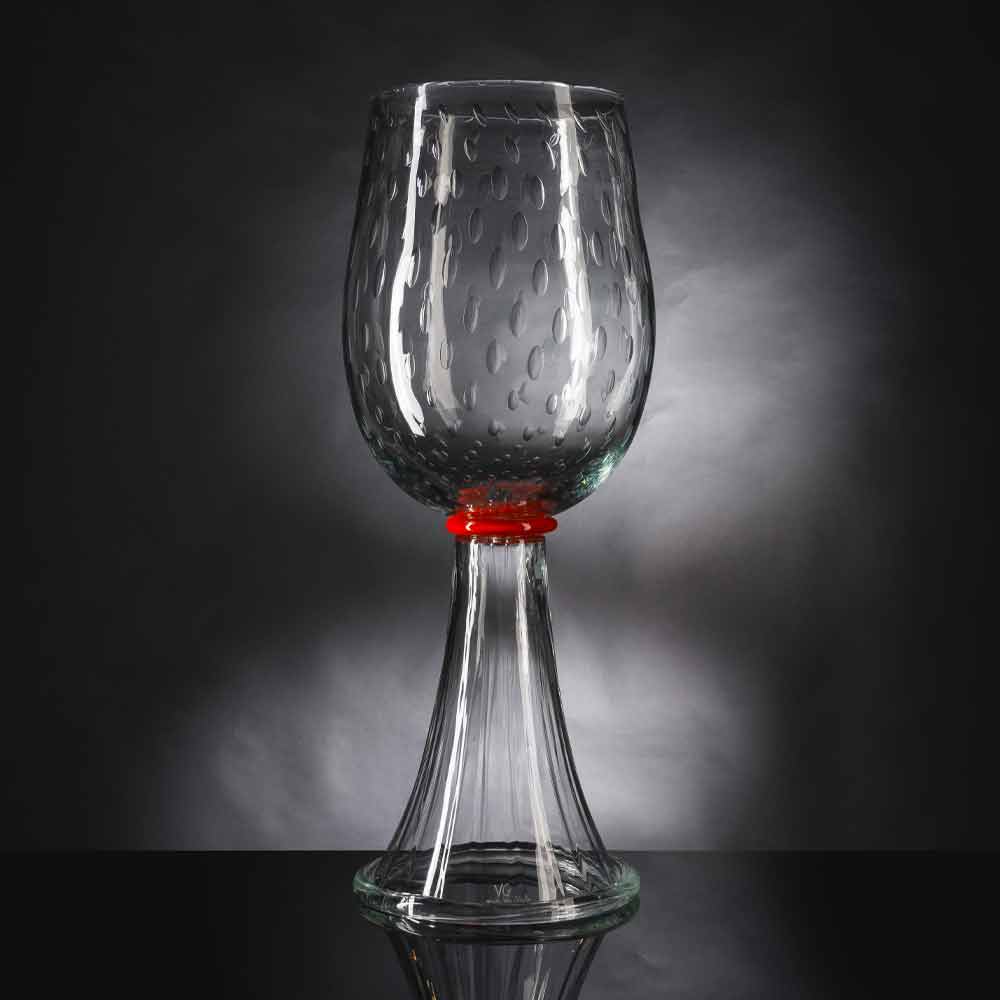 Vase d'intérieur en verre de Murano transparent avec détail rouge fabriqué en Italie.
