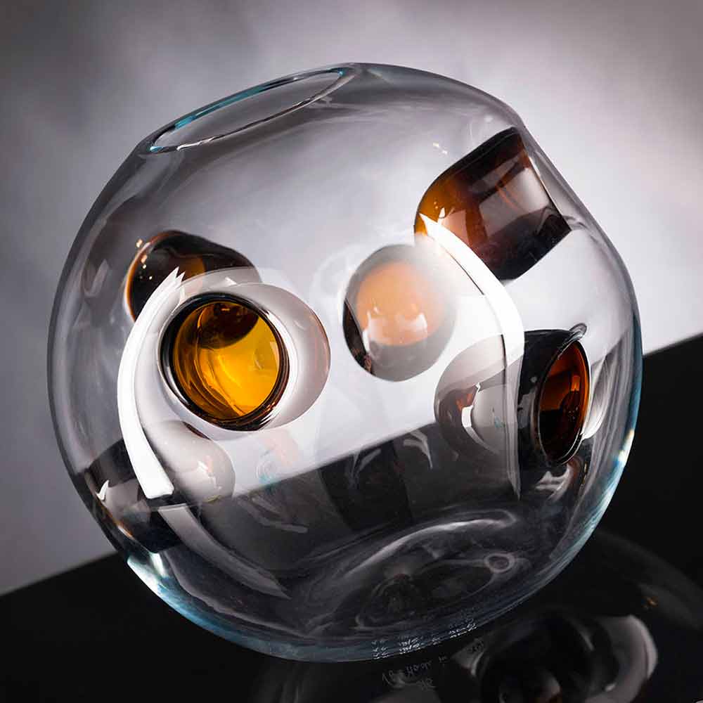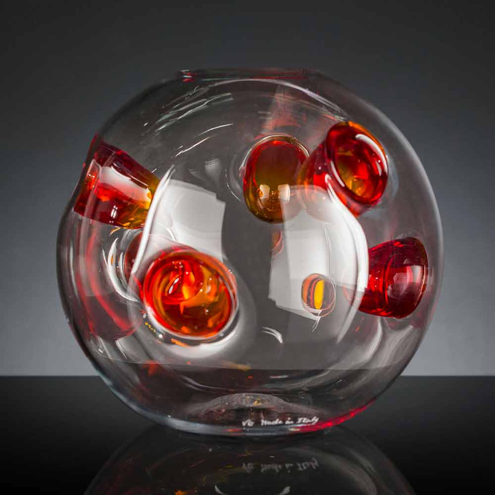 Vase en verre soufflé de Murano avec détails colorés fabriqué en Italie.