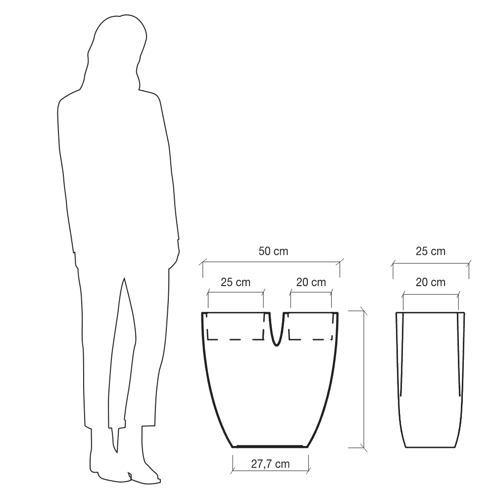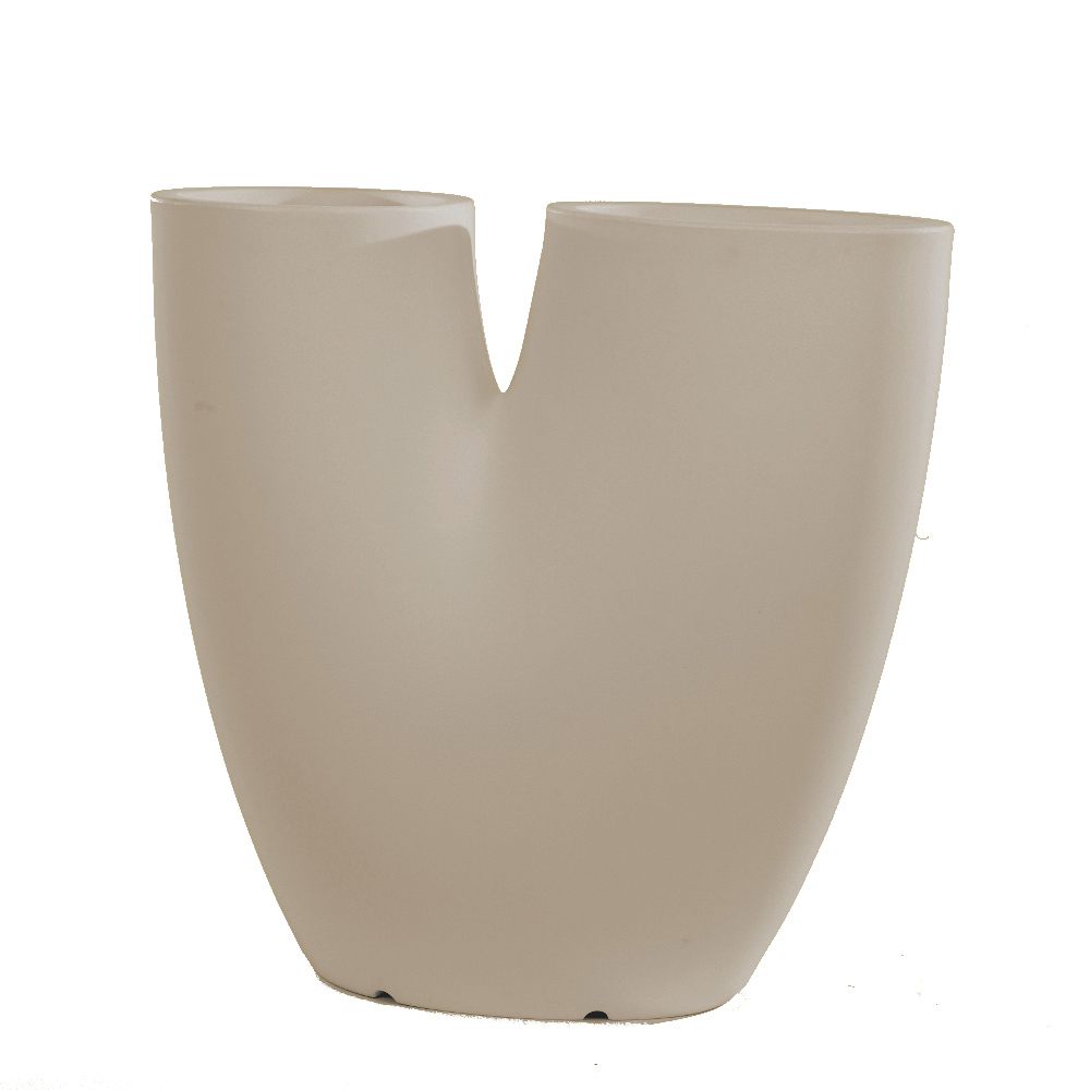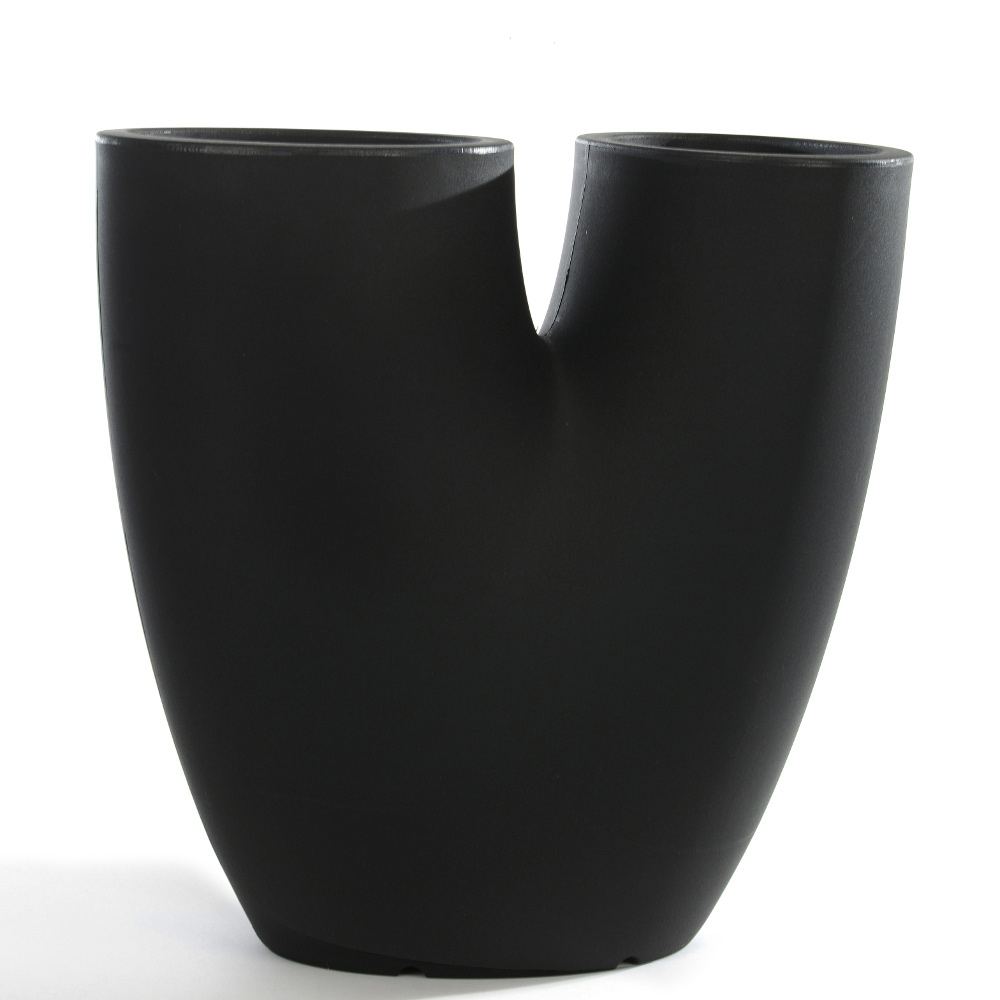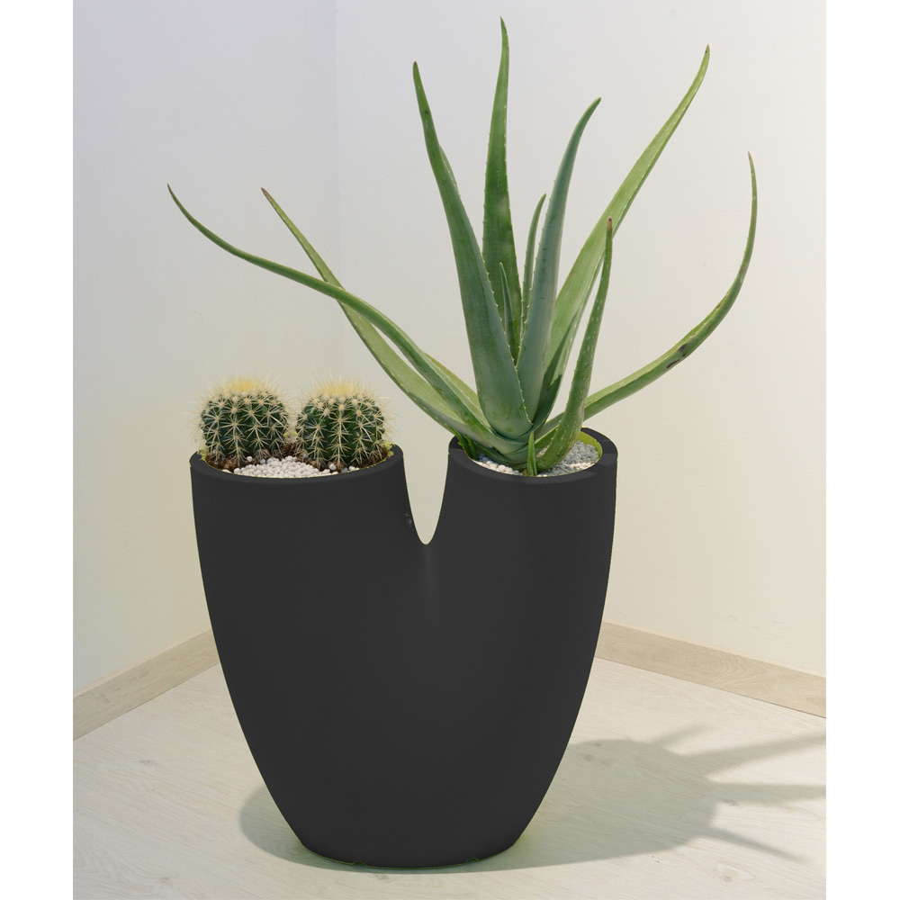 Flowes est un vase moderne au design élancé et captivant, conçu pour placer deux types de plantes différentes dans un seul vase grâce aux deux trous existants. Il peut être utilisé à la fois comme vase et comme porte-vase. Disponible en différentes couleurs, il est le mieux adapté aux environnements extérieurs et intérieurs.