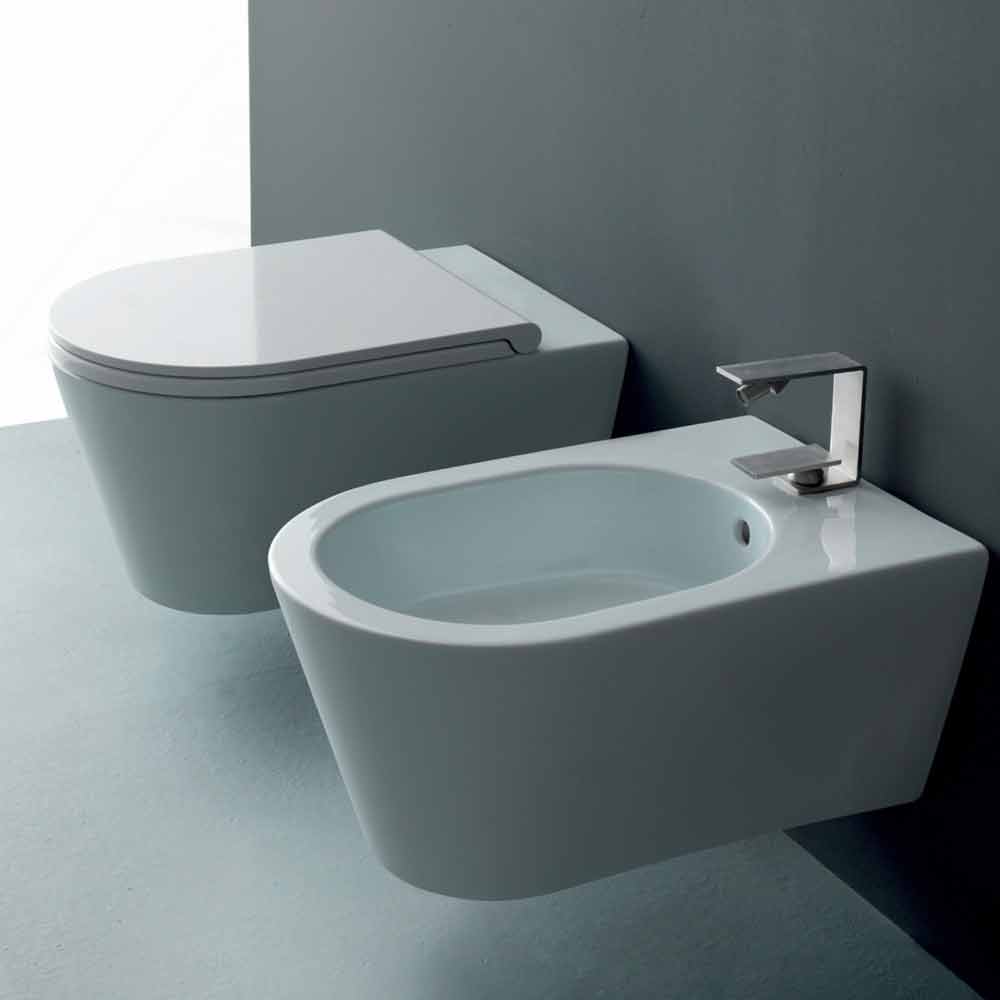 WC suspendu moderne Sun Round en céramique 57x37 cm, fabriqué en Italie