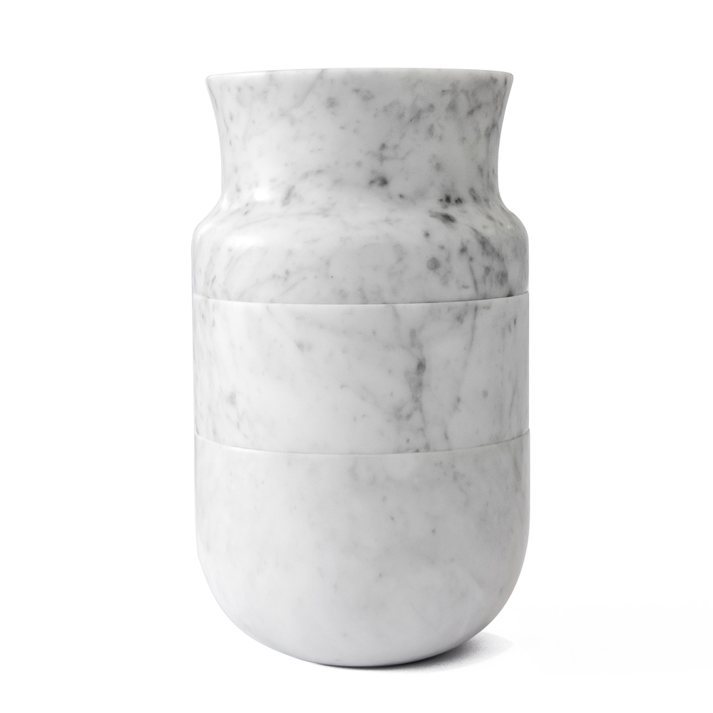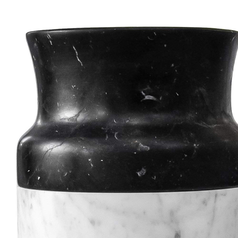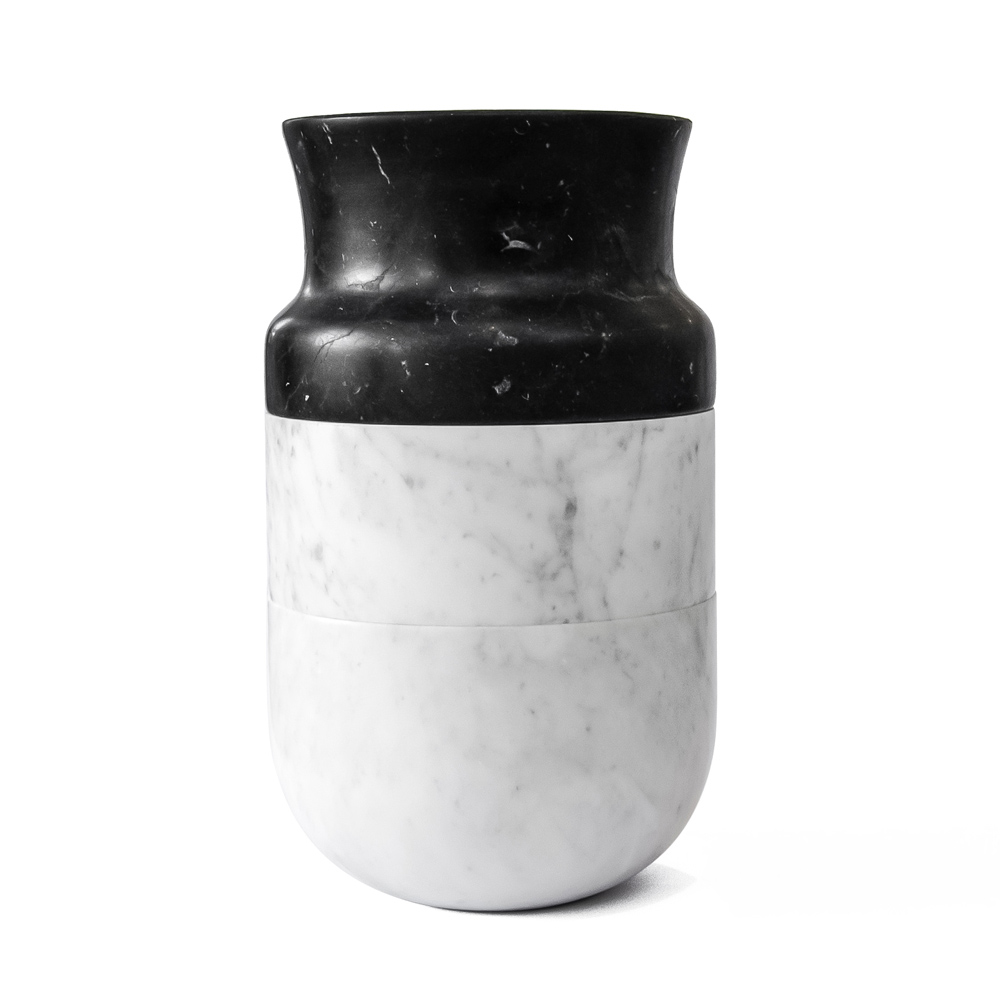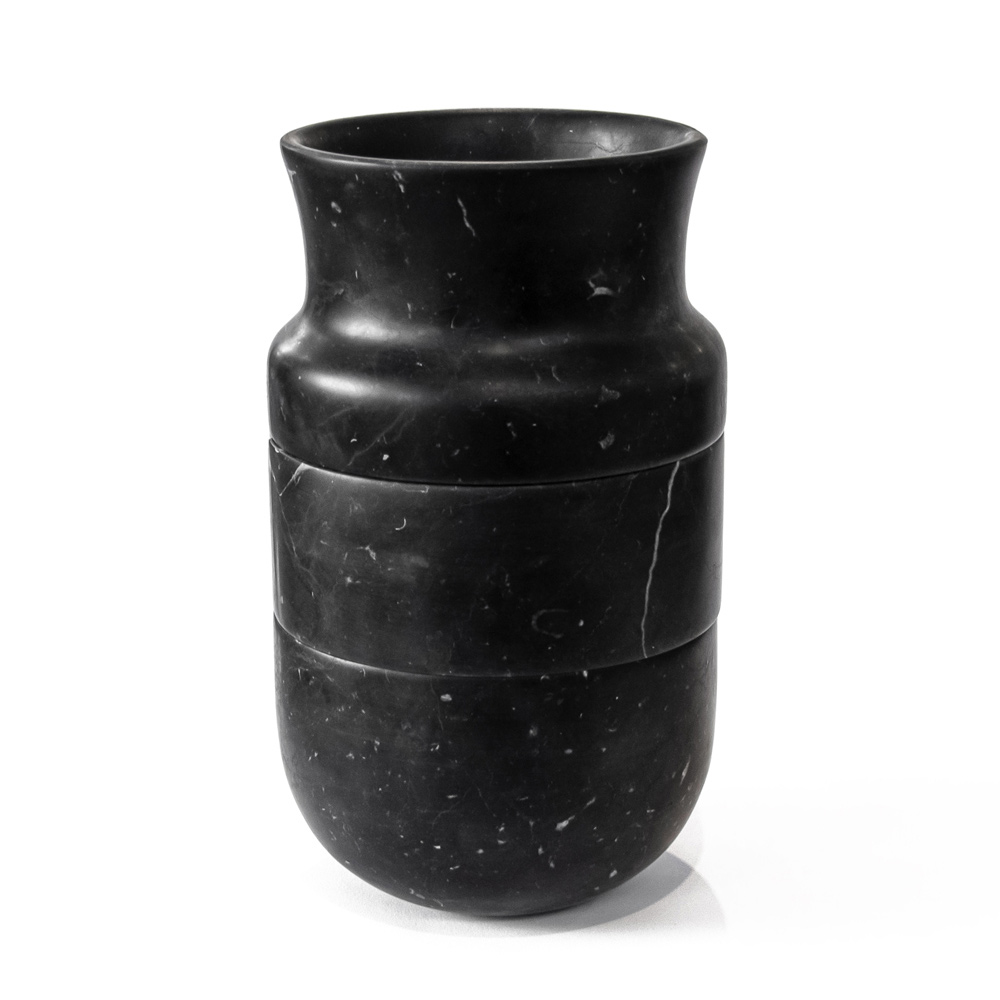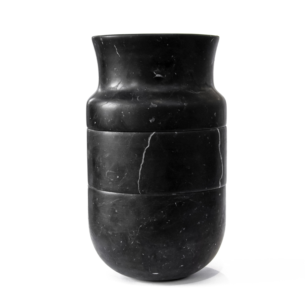 Vase décoratif en 3 parties design en marbre blanc de Carrare ou Marquinia noir fabriqué en Italie.