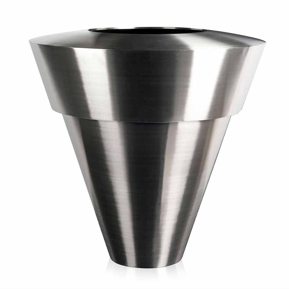 Vase élégant pour intérieurs en acier brossé fabriqué en Italie.
