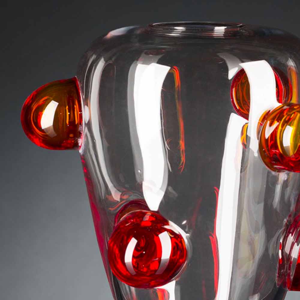 Vase d'intérieur élégant enverre soufflé de Murano transparent avec détail rougegrâce à un processus entièrement Made in Italy . Un complément qui combine l' extrême élégance du verre de Murano et ses merveilleuses caractéristiques avec un design moderne et vivant pour donner vie à une idée de mobilier exclusif et avant-gardiste capable d'enrichir n'importe quel espace domestique et non avec une touche de couleur . Un style idéal pour les environnements les plus variés, de l'ameublement à celui des hôtels, restaurants, zones contract, spas mais aussi comme cadre pour des événements et des mariages.