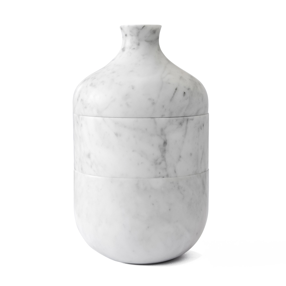 Vase décoratif en marbre blanc de Carrare design en 3 parties fabriqué en Italie.