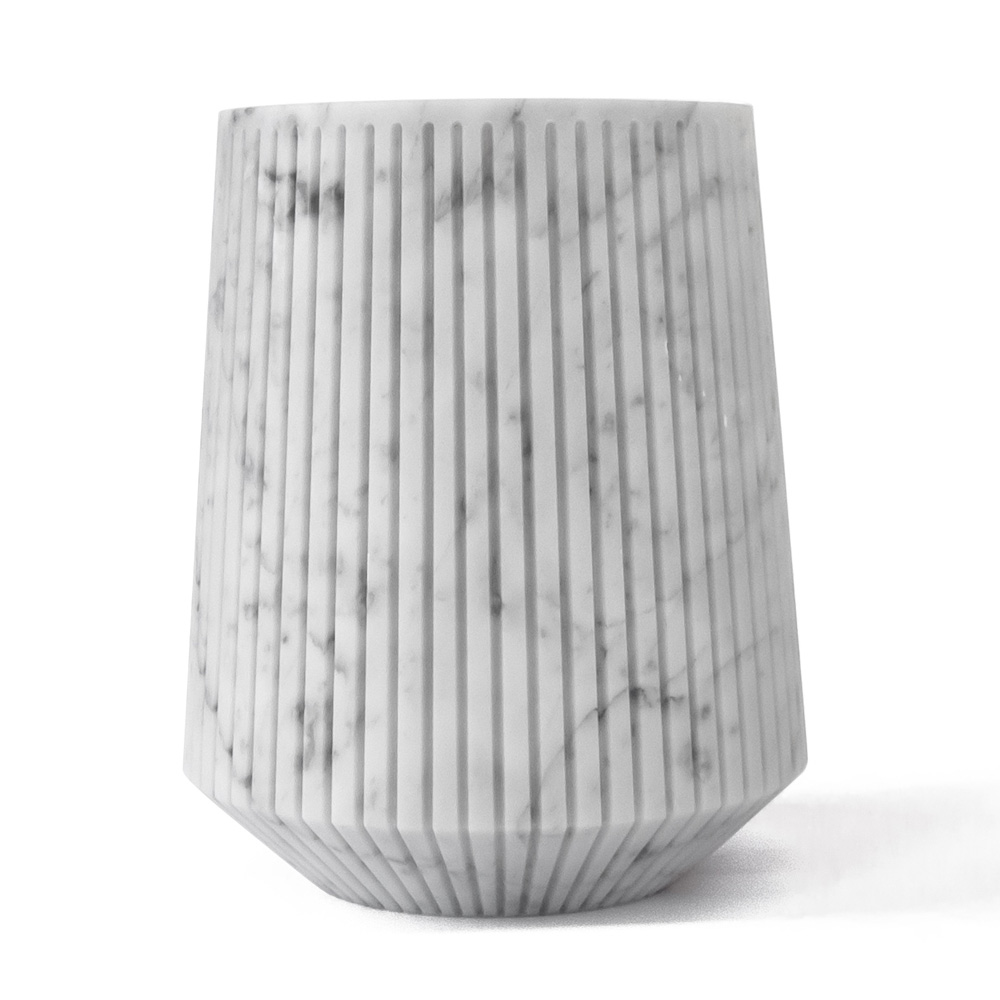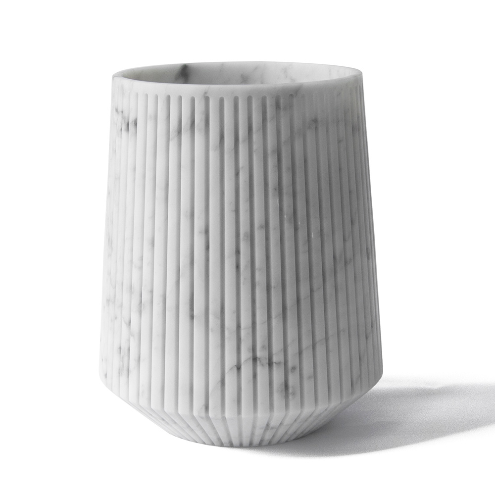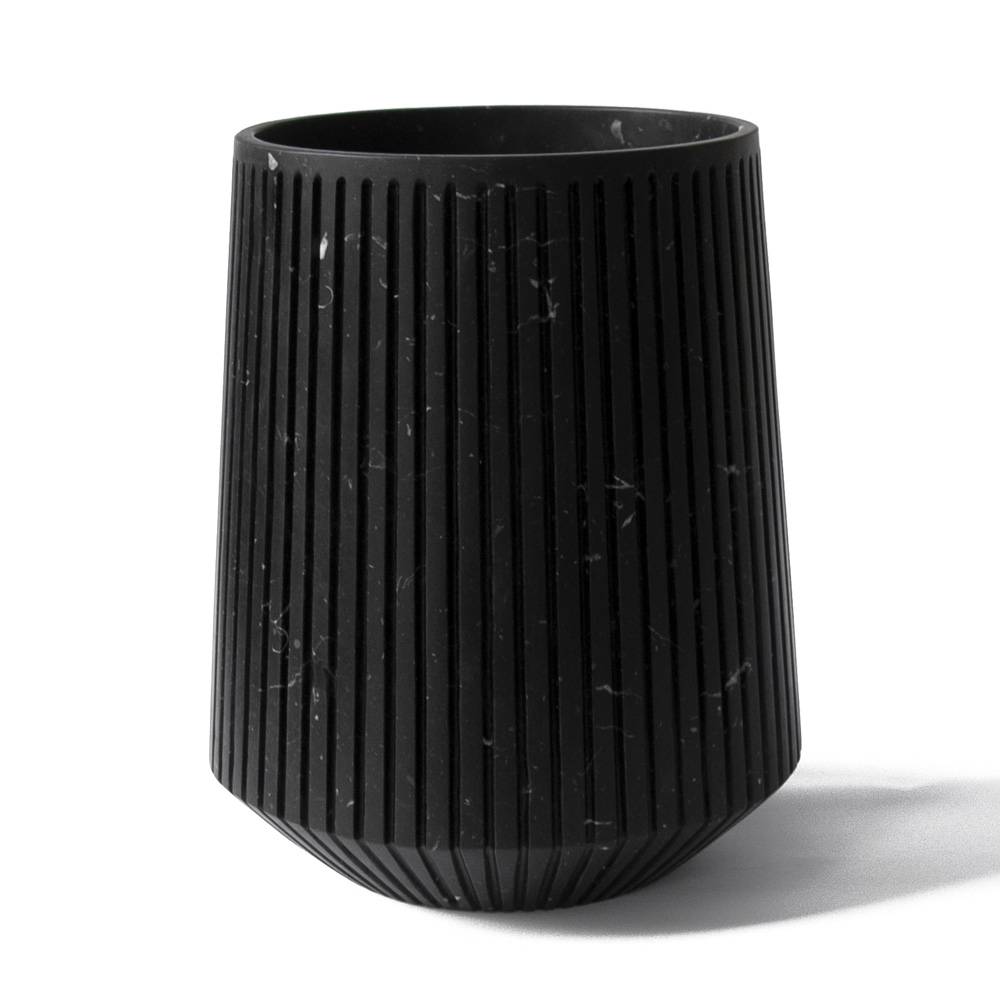 Grand vase artisanal en marbre blanc ou noir avec des rayures de design made in Italy.