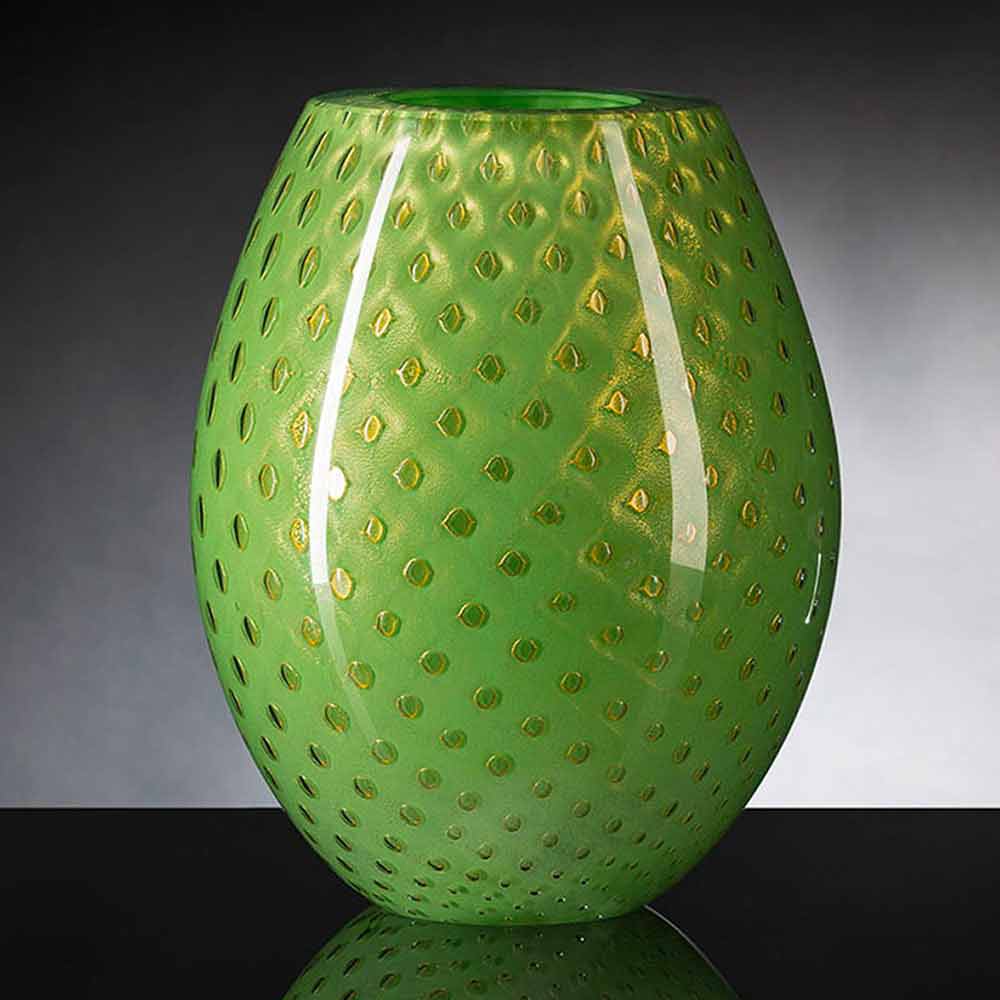 Vase d'intérieur en verre soufflé de Murano coloré fabriqué en Italie.