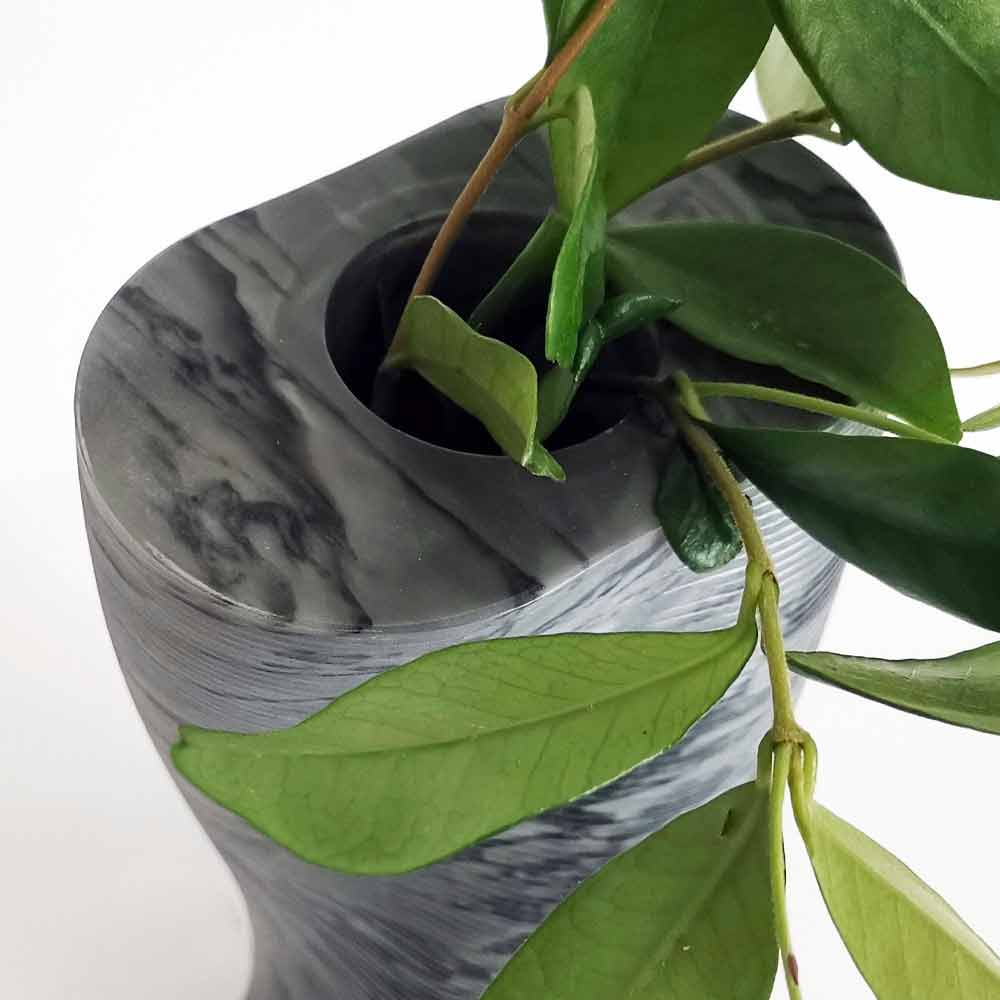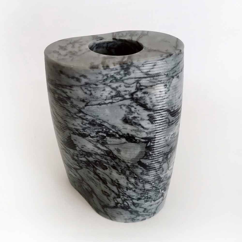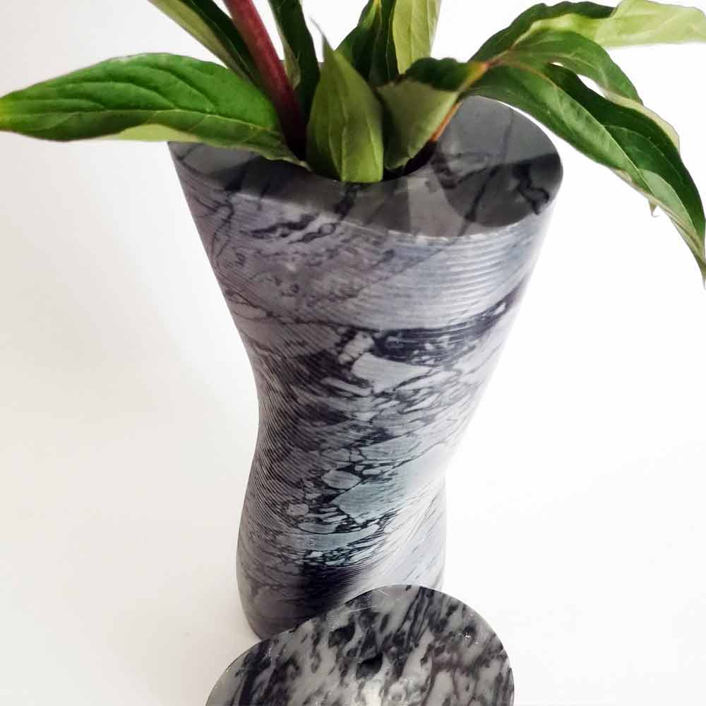 Vase décoratif de design moderne en marbre Bardiglio fleuri Fabriqué en Italie.