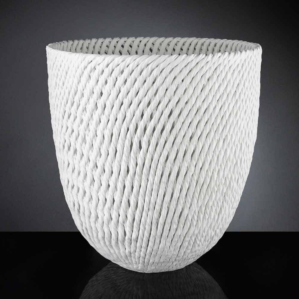 Vase décoratif pour intérieurs en céramique blanche opaque fait à la main grâce à une production 100% Made in Italy . Un accessoire élégant caractérisé par la texture tissée particulière qui rappelle un panier en osier soulignant ainsi la valeur de l' artisanat marqué par la précision, la passion et l'amour pour la tradition. Le résultat est une idée de mobilier exclusif idéal pour enrichir les grandes tables à manger, les entrées, les chambres ou tout autre espace où vous souhaitez compléter l'esthétique avec personnalité et raffinement . Un style idéal pour les environnements les plus variés, de l'ameublement à celui des hôtels, restaurants, zones contract, spas mais aussi comme cadre pour des événements et des mariages.
