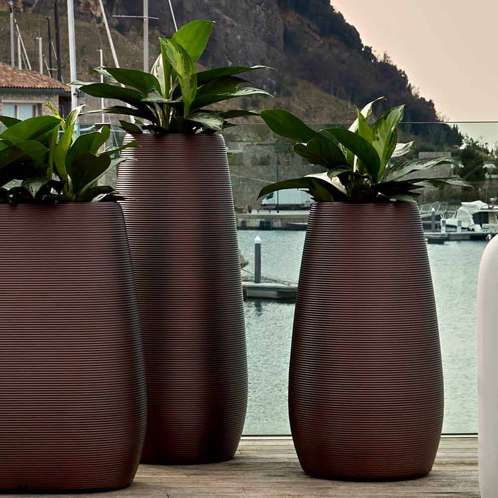 Vase intérieur ou extérieur moderne en plastique perle foncé disponible en 3 tailles, fabriqué en Italie, 2 pièces.