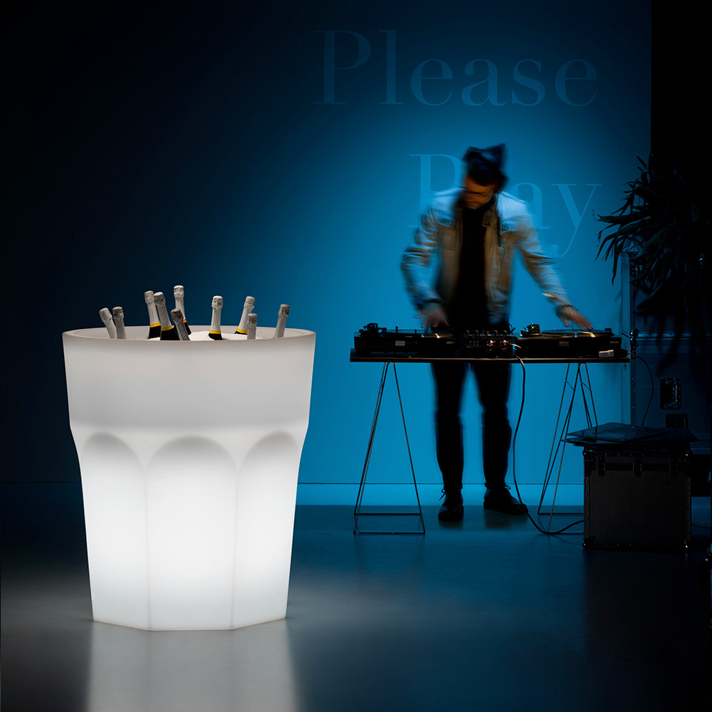 Vase design décoratif lumineux en polyéthylène avec éclairage LED Fabriqué en Italie.