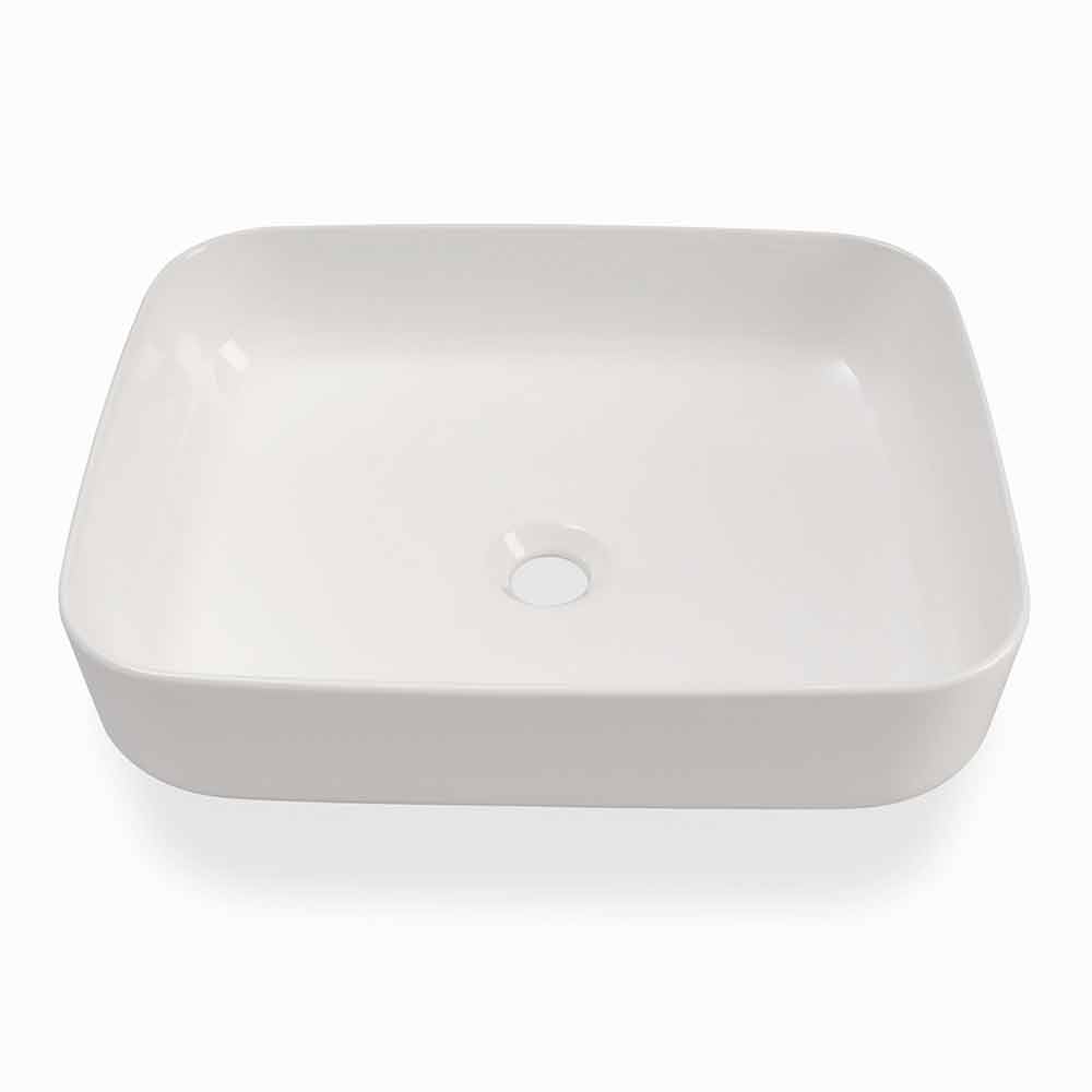 Lavabo à poser de style moderne fabriqué à la main en Italie en céramique blanche brillante.