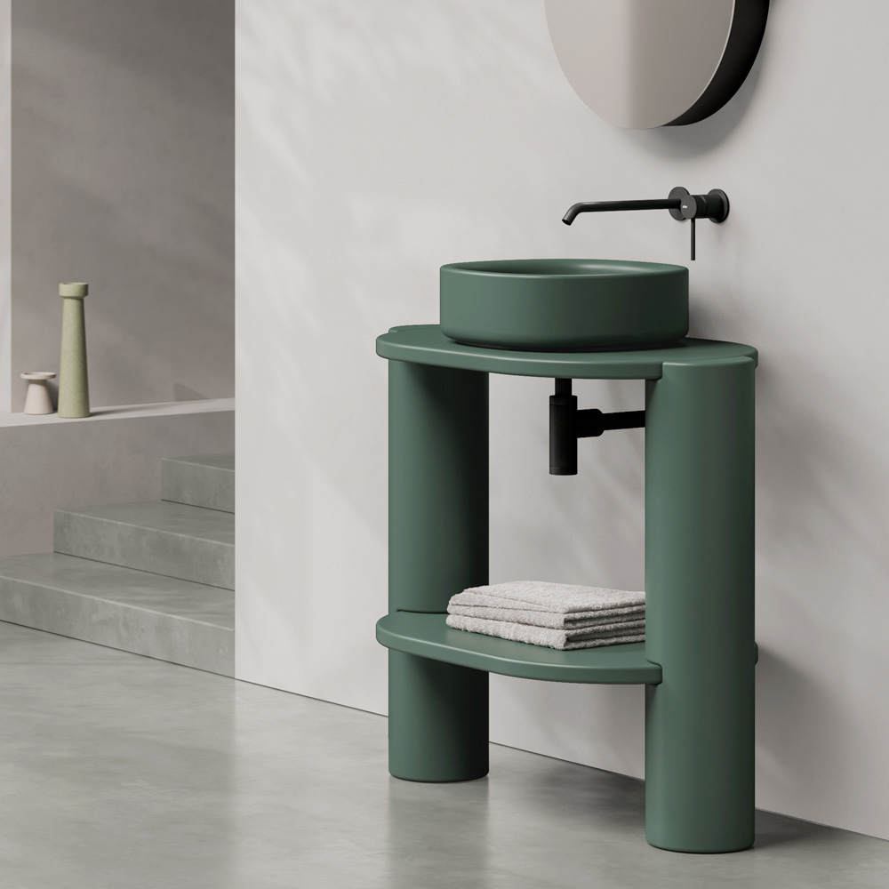Son bord légèrement épais lui confère solidité et présence, tandis que la surface lisse rehausse sa luminosité, ce qui en fait un véritable point focal de la décoration de la salle de bain.