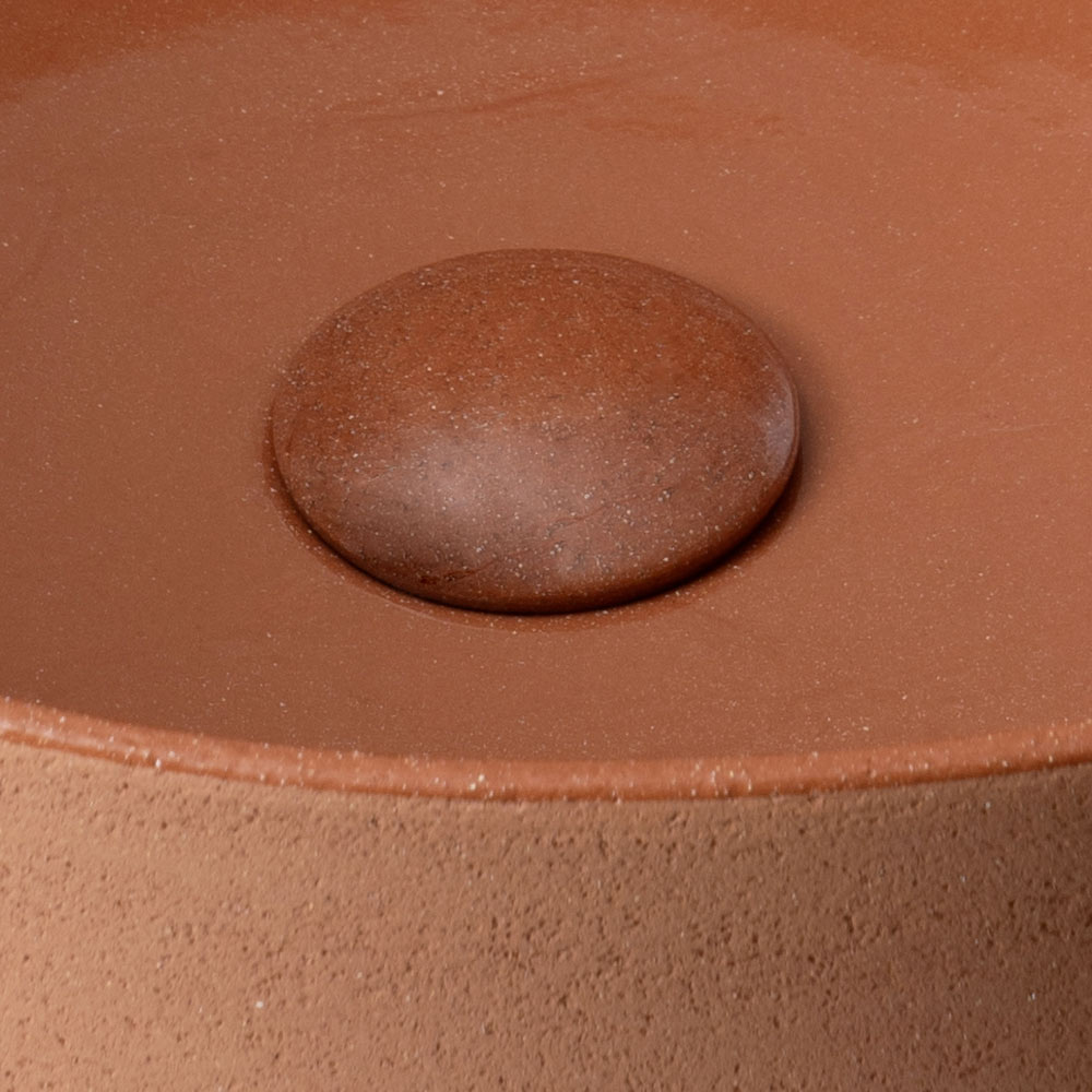 Ce lavabo à poser, en terre naturelle , se distingue par ses formes épurées et la texture riche de sa surface. Pièce design alliant savoir-faire artisanal et recherche esthétique, il est conçu pour sublimer la salle de bains d'une élégance contemporaine.
