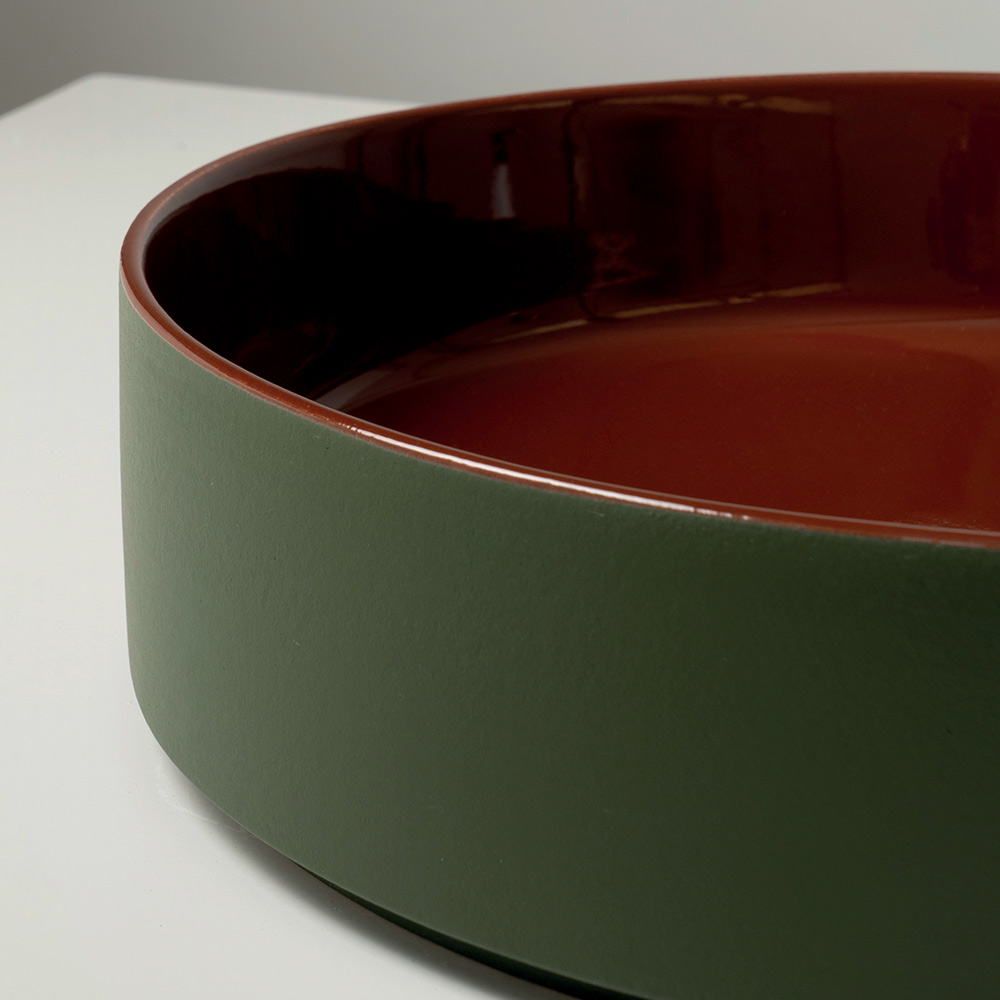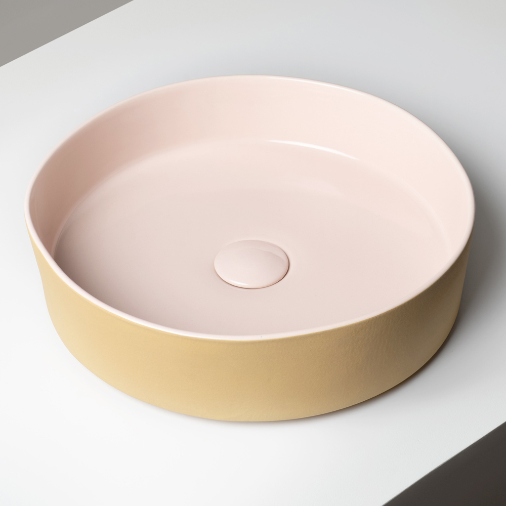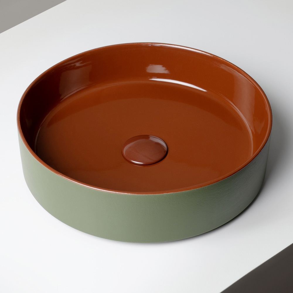 Sa forme essentielle et compacte est sublimée par un contraste raffiné entre l'intérieur brillant et l'extérieur mat , créant un élégant jeu visuel entre les surfaces et les nuances. Les combinaisons de couleurs, inspirées d'une palette vibrante et sophistiquée, font de chaque lavabo un véritable élément décoratif.