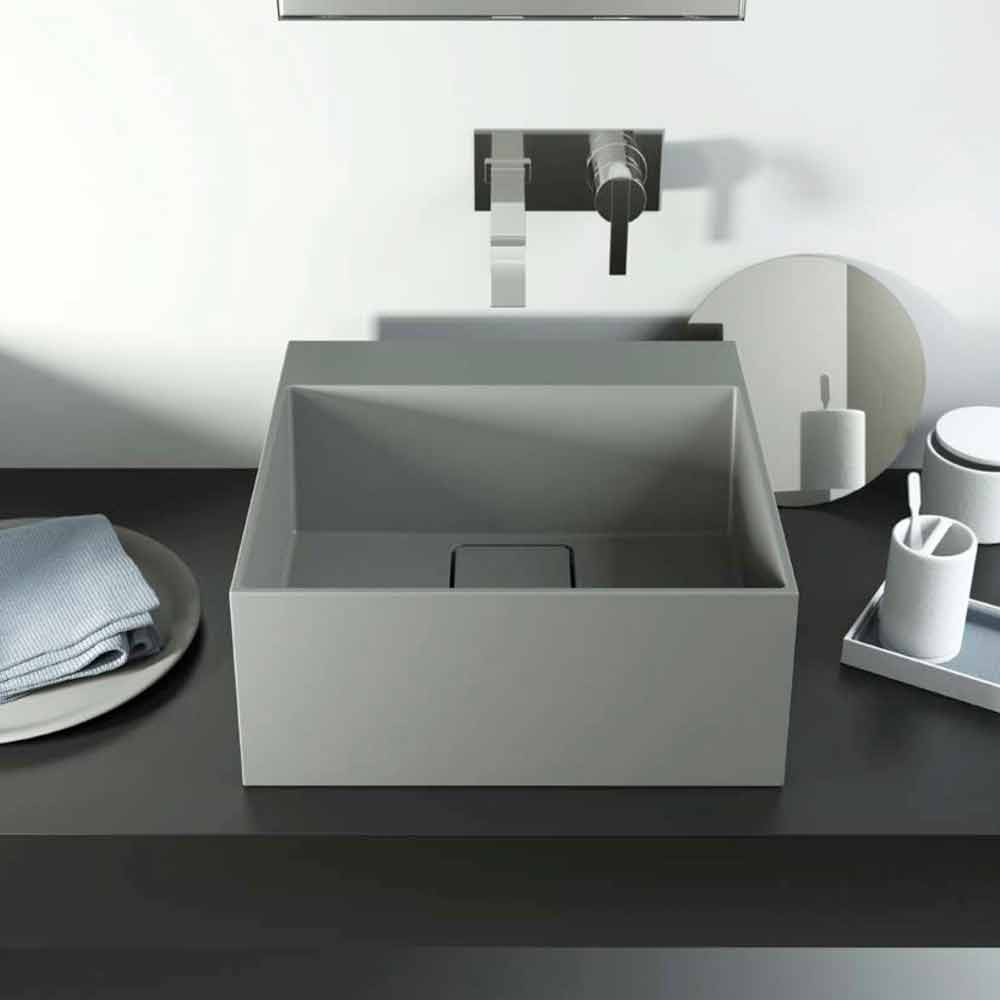 Lavabo à poser moderne fabriqué en Italie, Lavis Lavis est un fantastique lavabo à poser avec des surfaces solides et des volumes accentués. parfait pour décorer votre salle de bain avec design et sophistication.