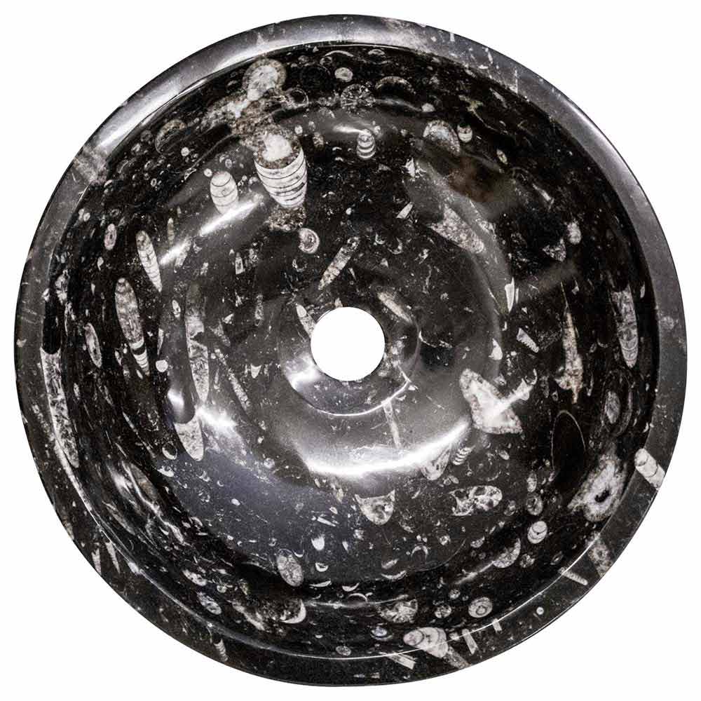 Vasque à poser design en mable avec fossiles, une pièce unique.