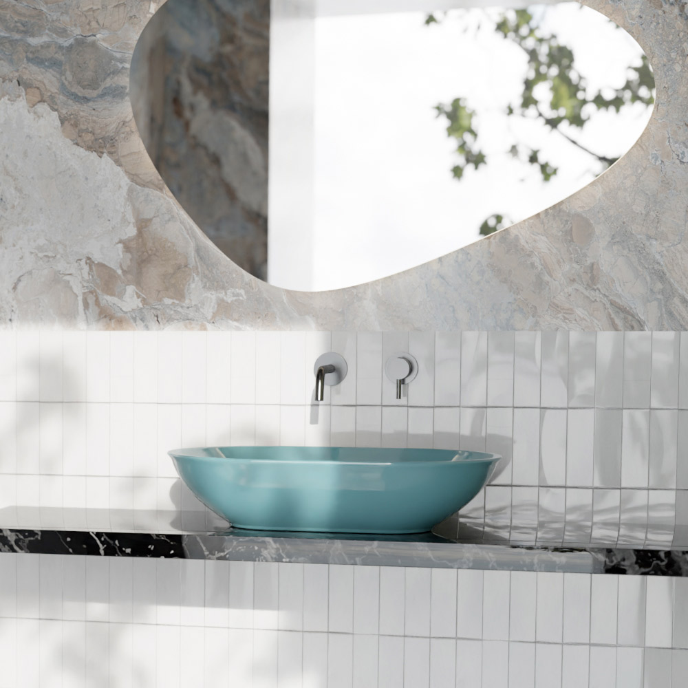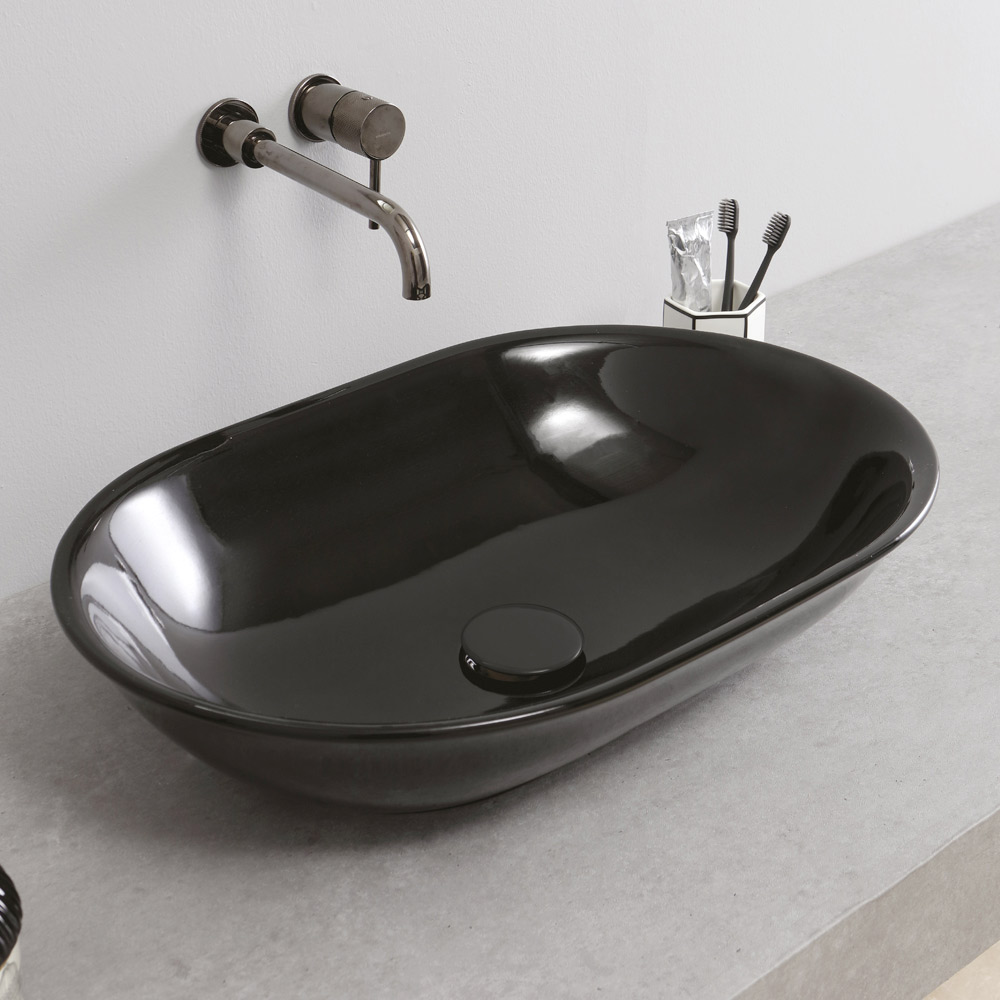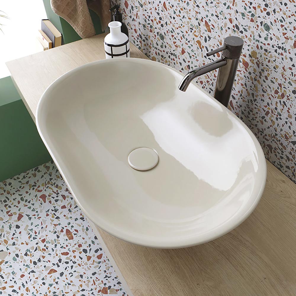 Lavabo à poser de forme ovale en céramique colorée avec finition brillante réalisée grâce à une production artisanale 100% Made in Italy . Des lignes douces et harmonieuses caractérisent le design de ce lavabo de salle de bain raffiné avec une esthétique simple et polyvalente . En effet, sa forme s'adapte parfaitement à tout contexte stylistique moderne, apportant avec elle une touche exclusive capable de compléter l'ameublement de la salle de bain d'une manière unique et avant-gardiste. Pour enrichir l'esthétique de la vasque, ce sont les merveilleuses couleurs proposées qui assurent un résultat raffiné malgré un style sobre et élégant .