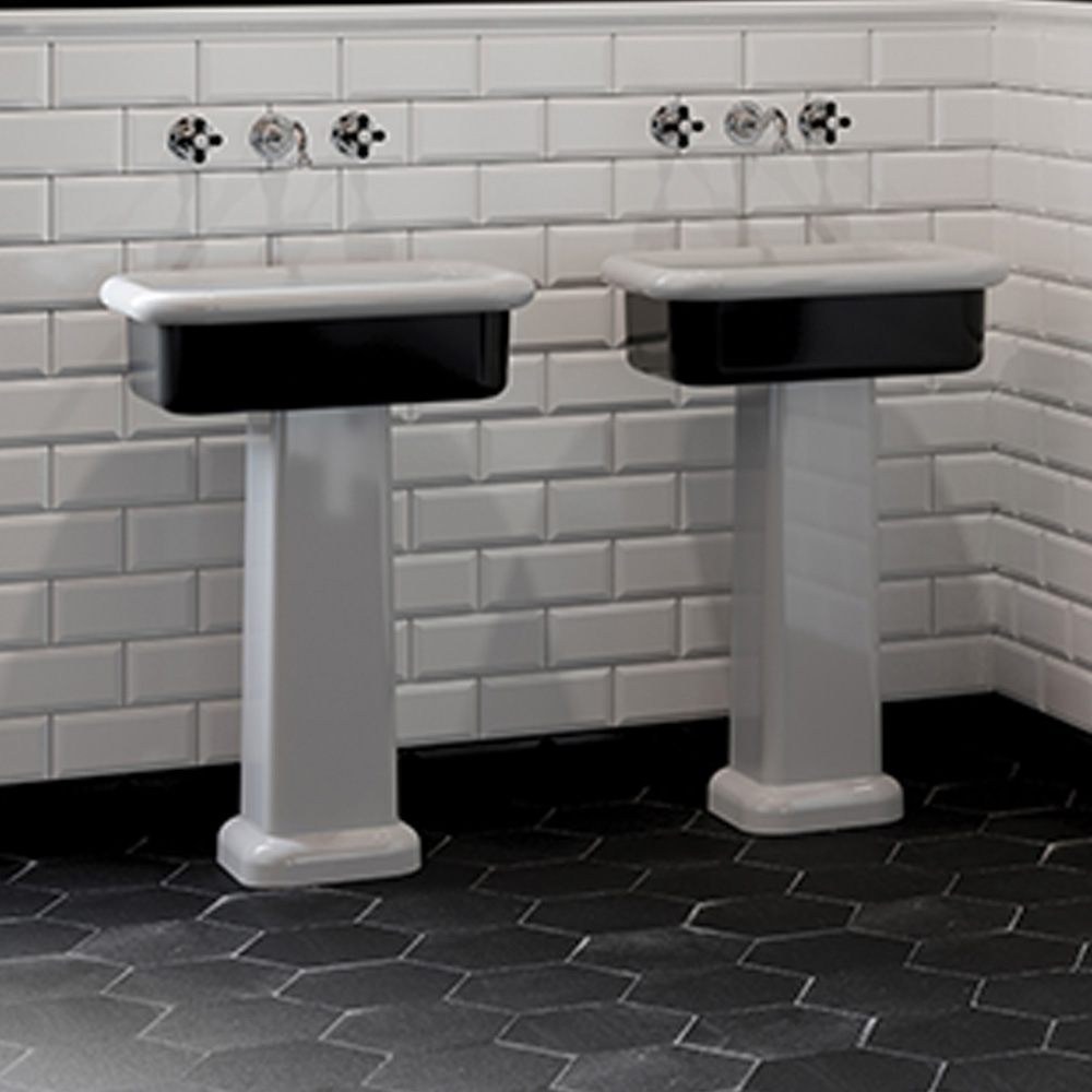 La variante noire comprend la colonne en céramique blanche sur laquelle repose le lavabo.