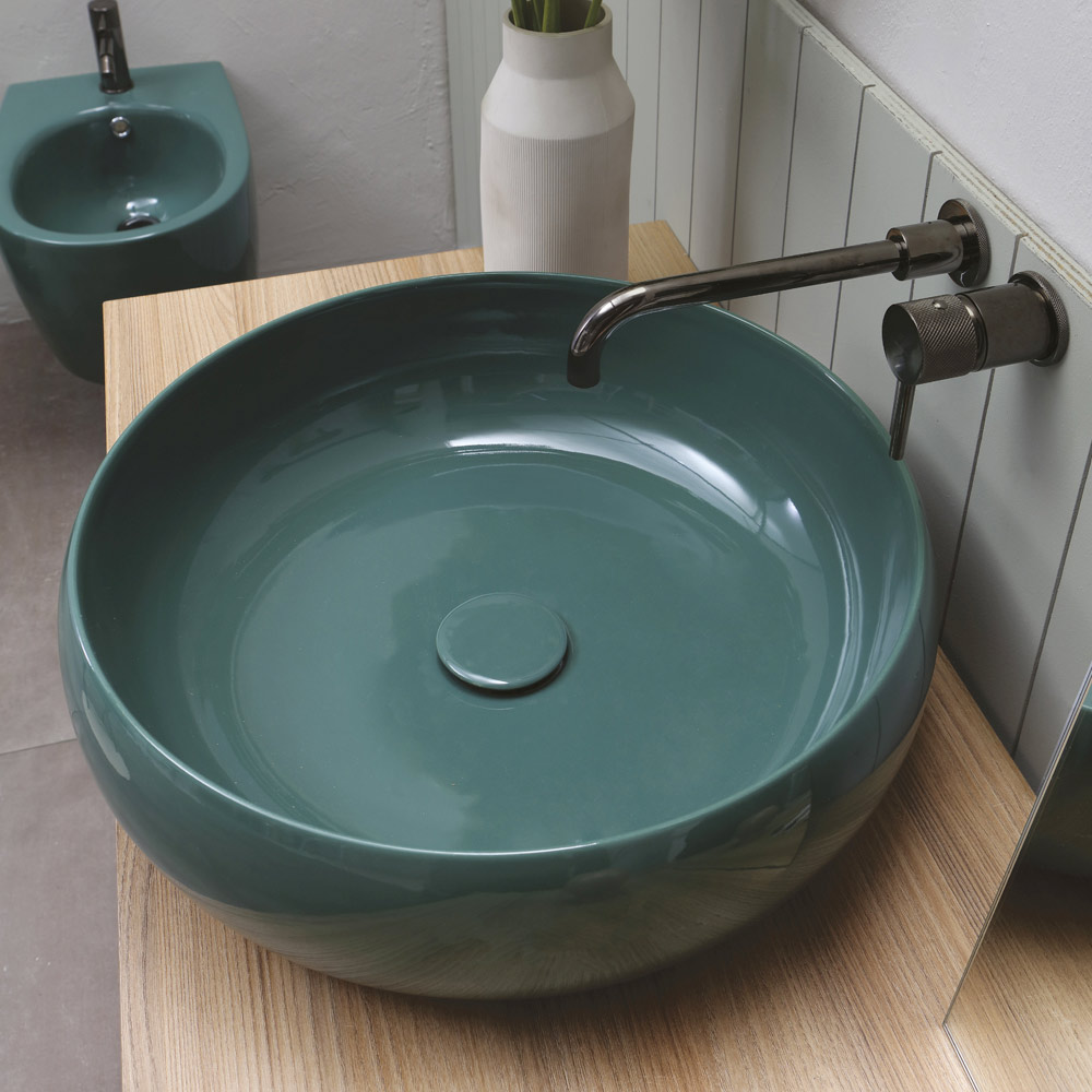 Lavabo à poser rond fabriqué en Italie grâce à un savoir-faire artisanal en céramique colorée brillante. Un meuble original et élégant qui présente un design marqué par des lignes douces et harmonieuses qui donnent au produit toute sa personnalité contemporaine et sa saveur moderne . Idéal pour les salles de bains au mobilier raffiné et essentiel, ce lavabo apporte un fort impact scénographique grâce aux couleurs merveilleuses et inhabituelles proposées qui transforment son esthétique simple en un véritable chef-d'œuvre.