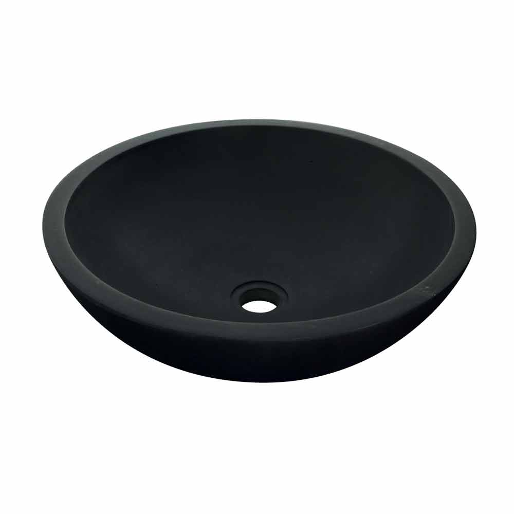 Vasque à poser ronde en pierre naturelle en basalte noir Moyo
