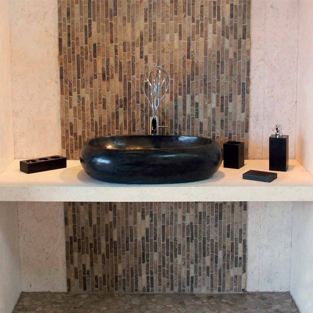 Vasque à poser ronde en pierre naturelle noire Waka