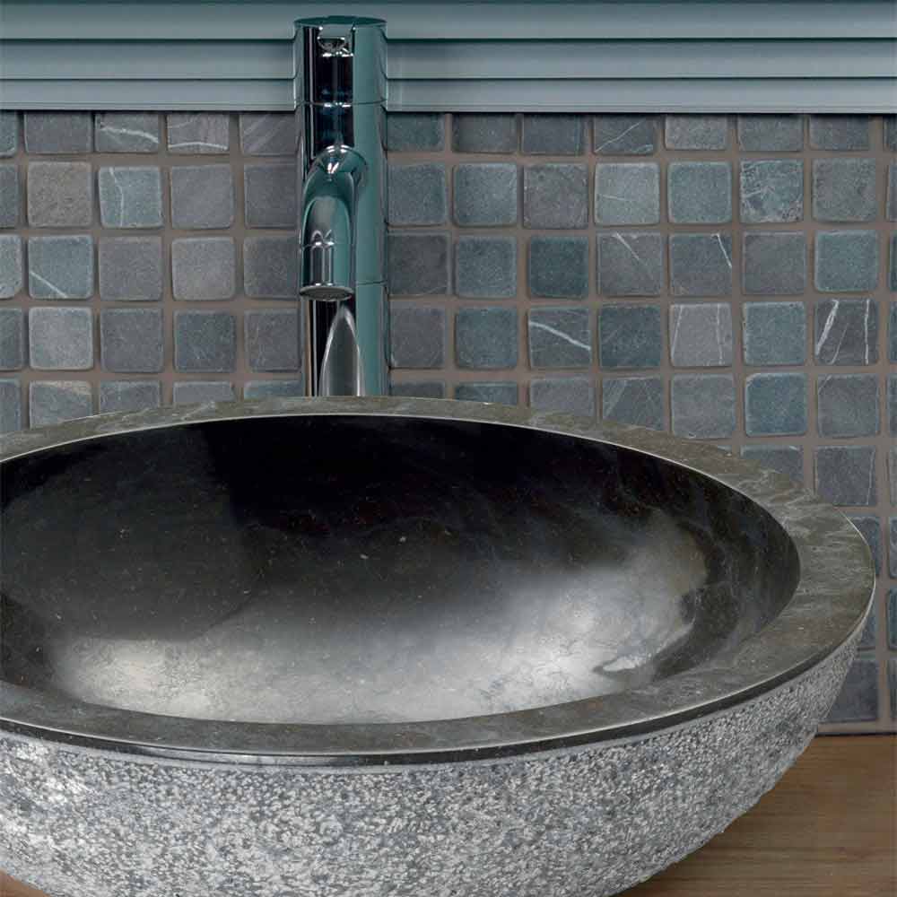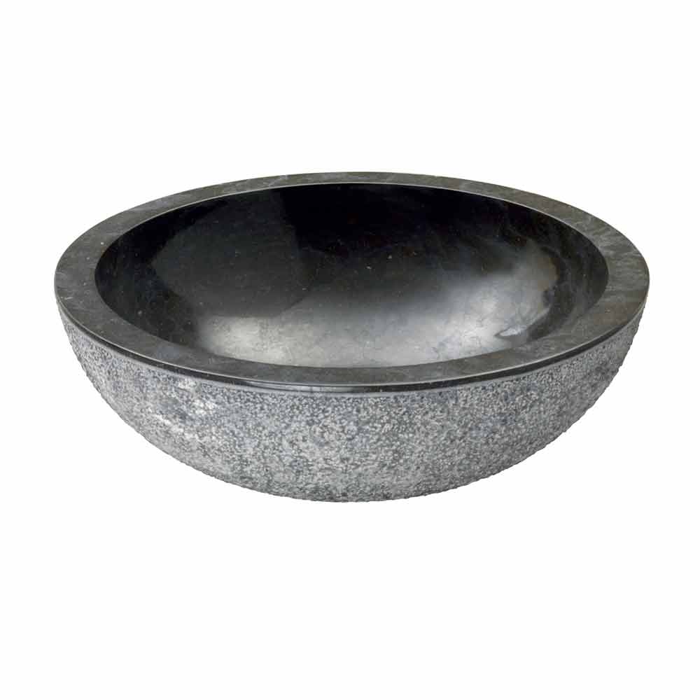 Vasque à poser ronde en pierre naturelle noire externe brut Pai