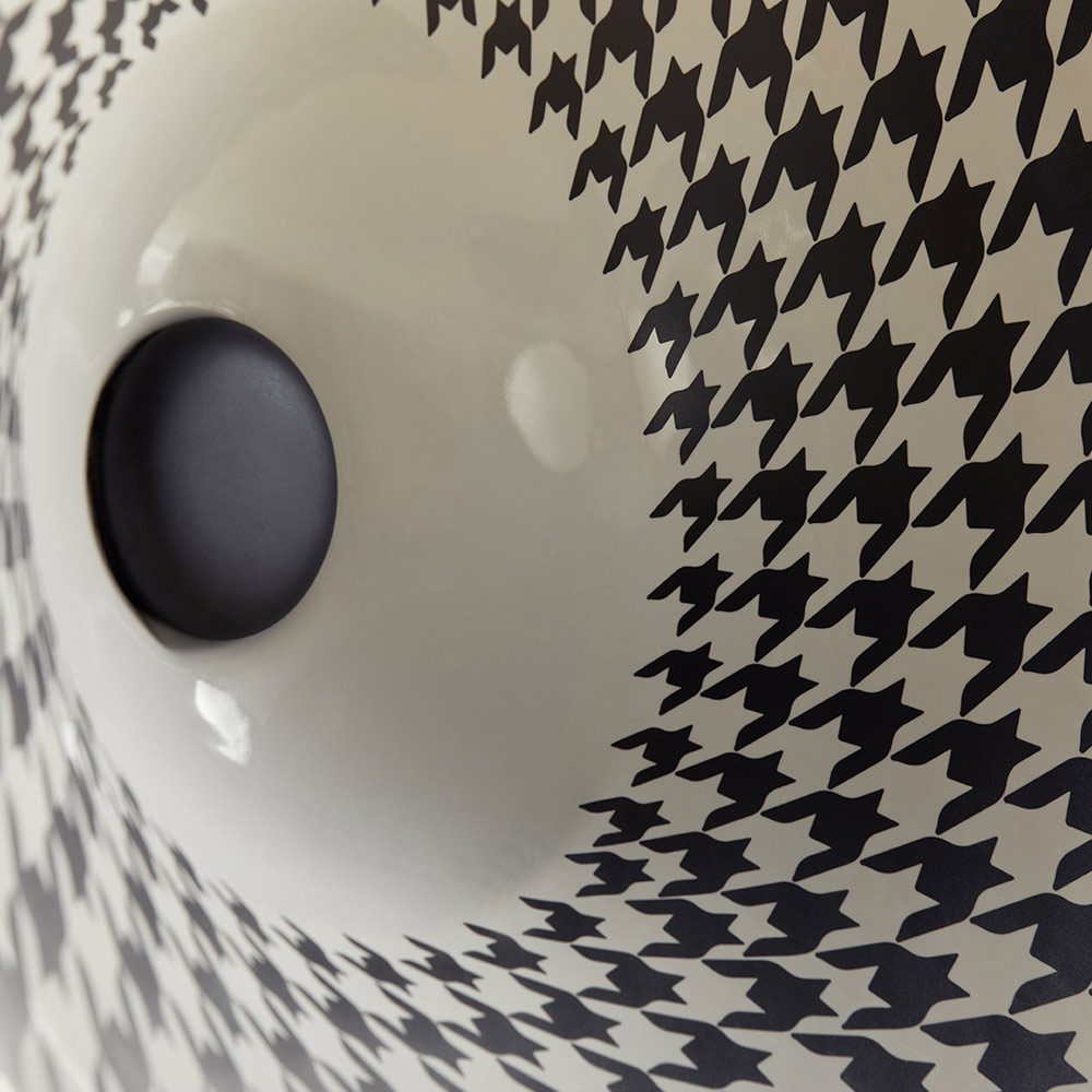 - décoration intérieure en relief peinture noire sur émail blanc, extérieur émail blanc