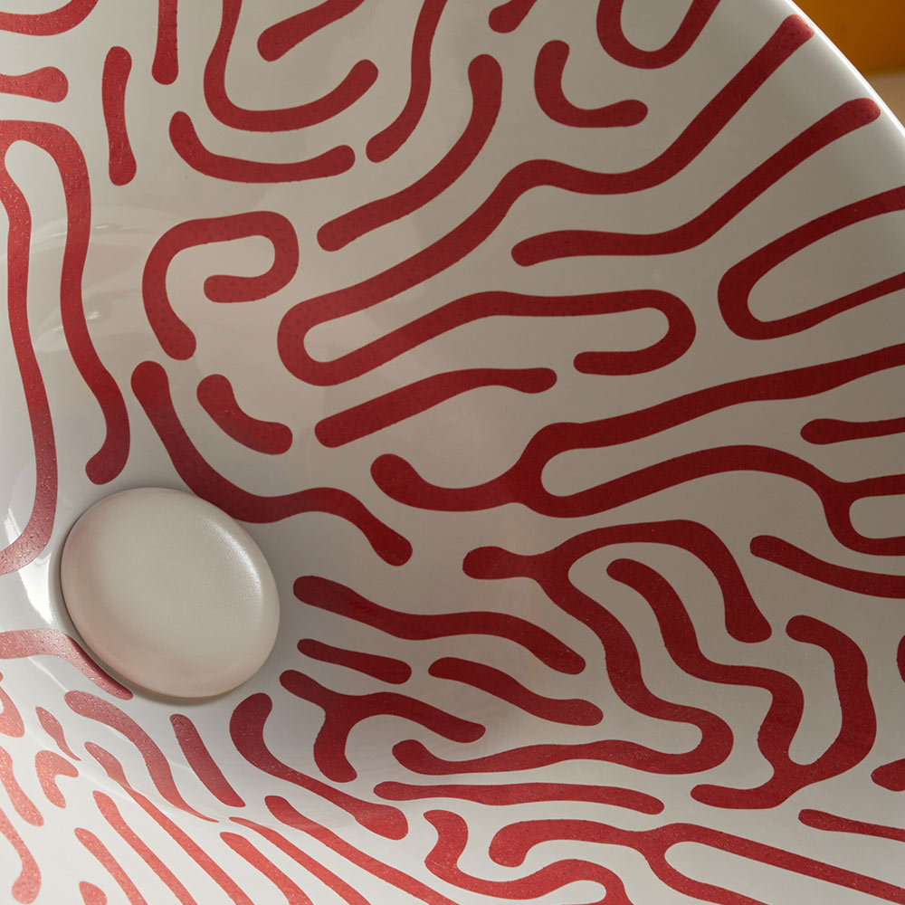 - décor intérieur en relief corail sur émail blanc, extérieur émail blanc