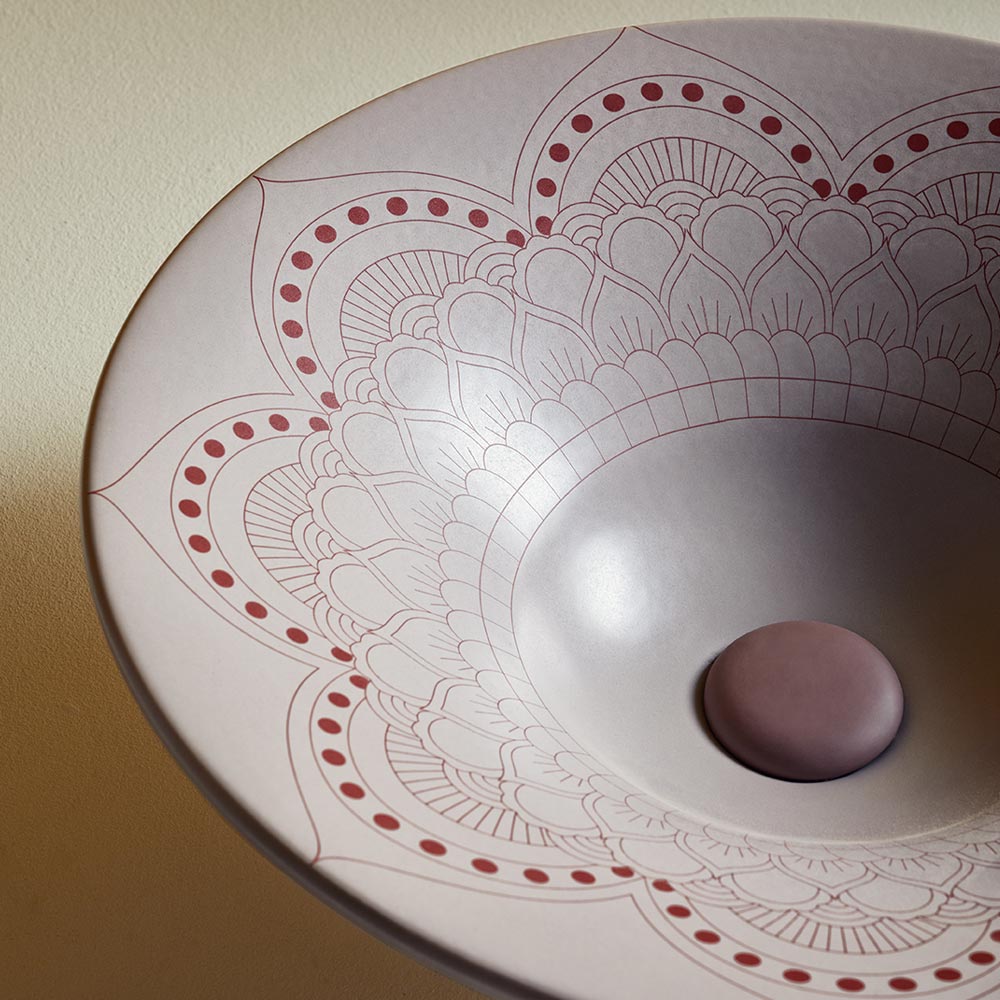 Lavabo semi-encastré en porcelaine française de première qualité colorée à la main, entièrement