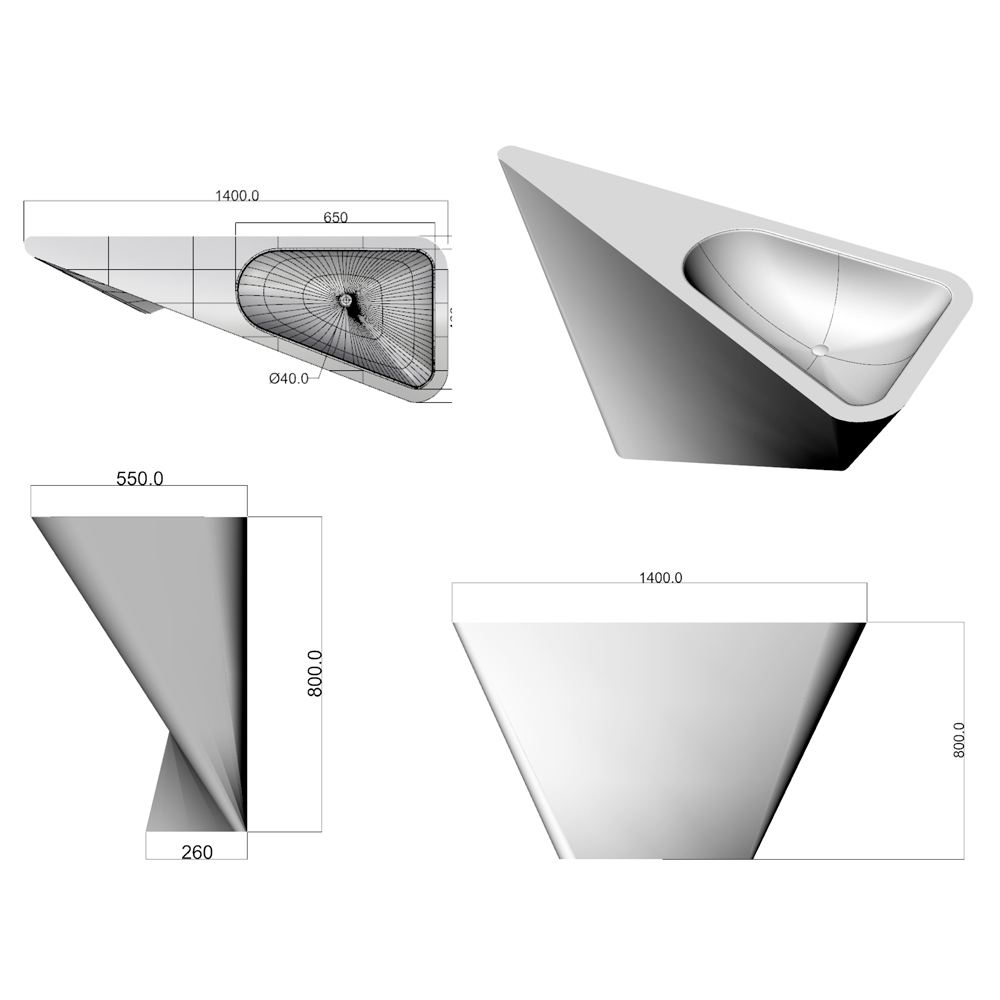 100% Conception. Matériau : surface solide ; Alliance parfaite entre design et confort, les formes angulaires de Mullet vous offrent une véritable sculpture pour votre salle de bain. Une grande baignoire vous garantit confort et utilité dans les tâches quotidiennes. Un objet unique à ne pas manquer. Si vous aimez le design, vous aimerez l'évier Mullet. Finition laquée brillante. Disponible en différentes variations de couleurs.