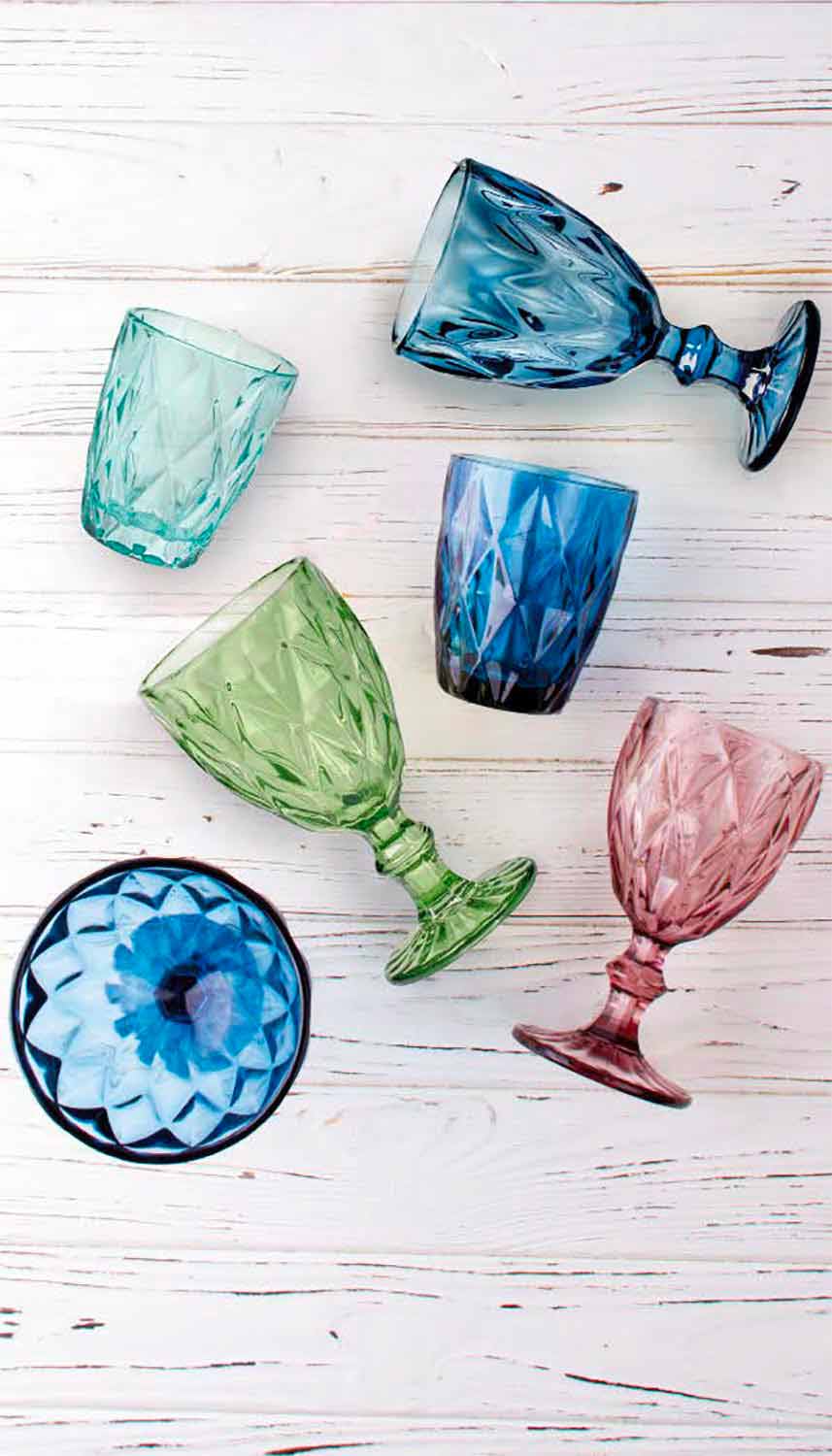 Les verres en verre coloré apportent une touche d'élégance et de sophistication à la table, grâce à la sculpture de diamants précieux et à la brillance de la matière. Dans la version transparente ou dans les 6 couleurs vives disponibles, vous pouvez trouver toutes les combinaisons que vous souhaitez, pour donner du contraste et de la couleur aux plats sur la table, donnant vie à des tables toujours nouvelles. Une version multicolore est également disponible pour un effet de fusion sans précédent.