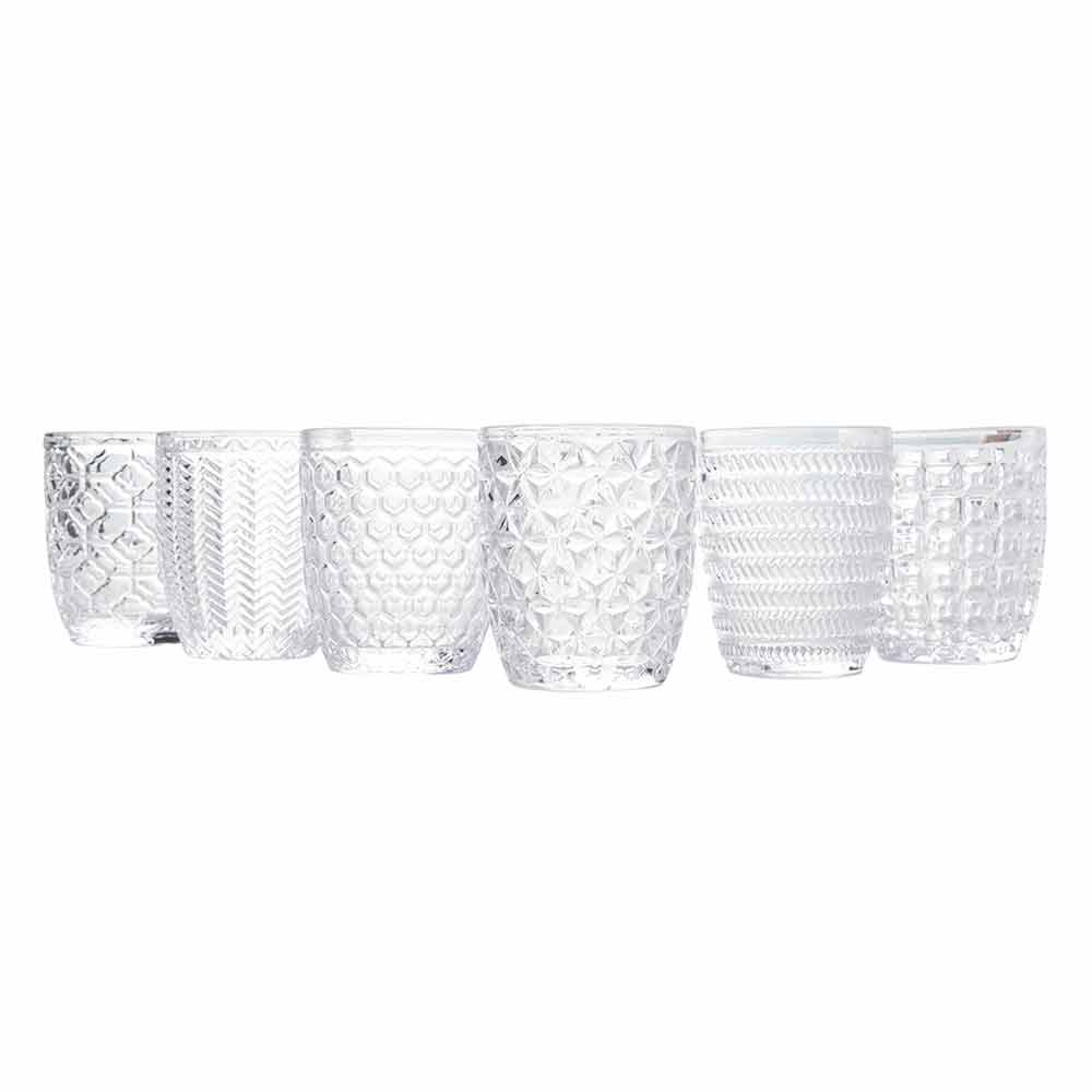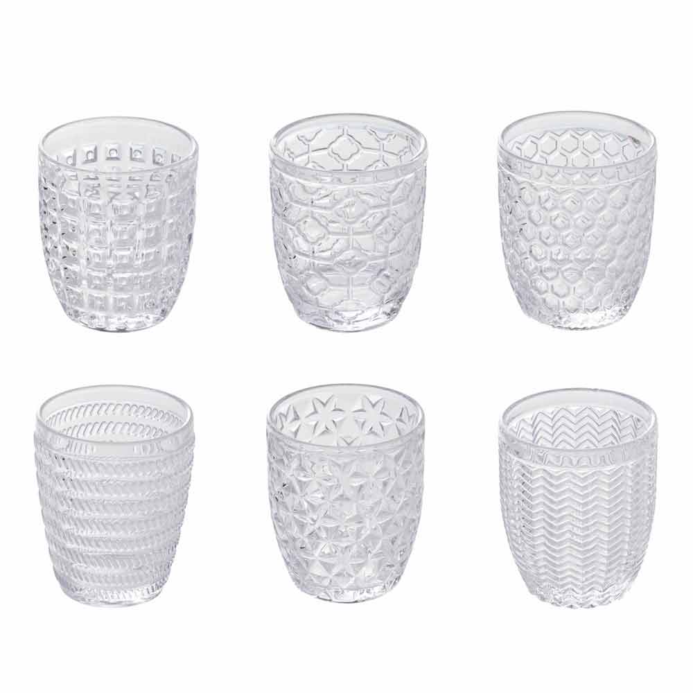 Ensemble de verres à eau en verre transparent décoré de différentes géométries, 12 pièces.