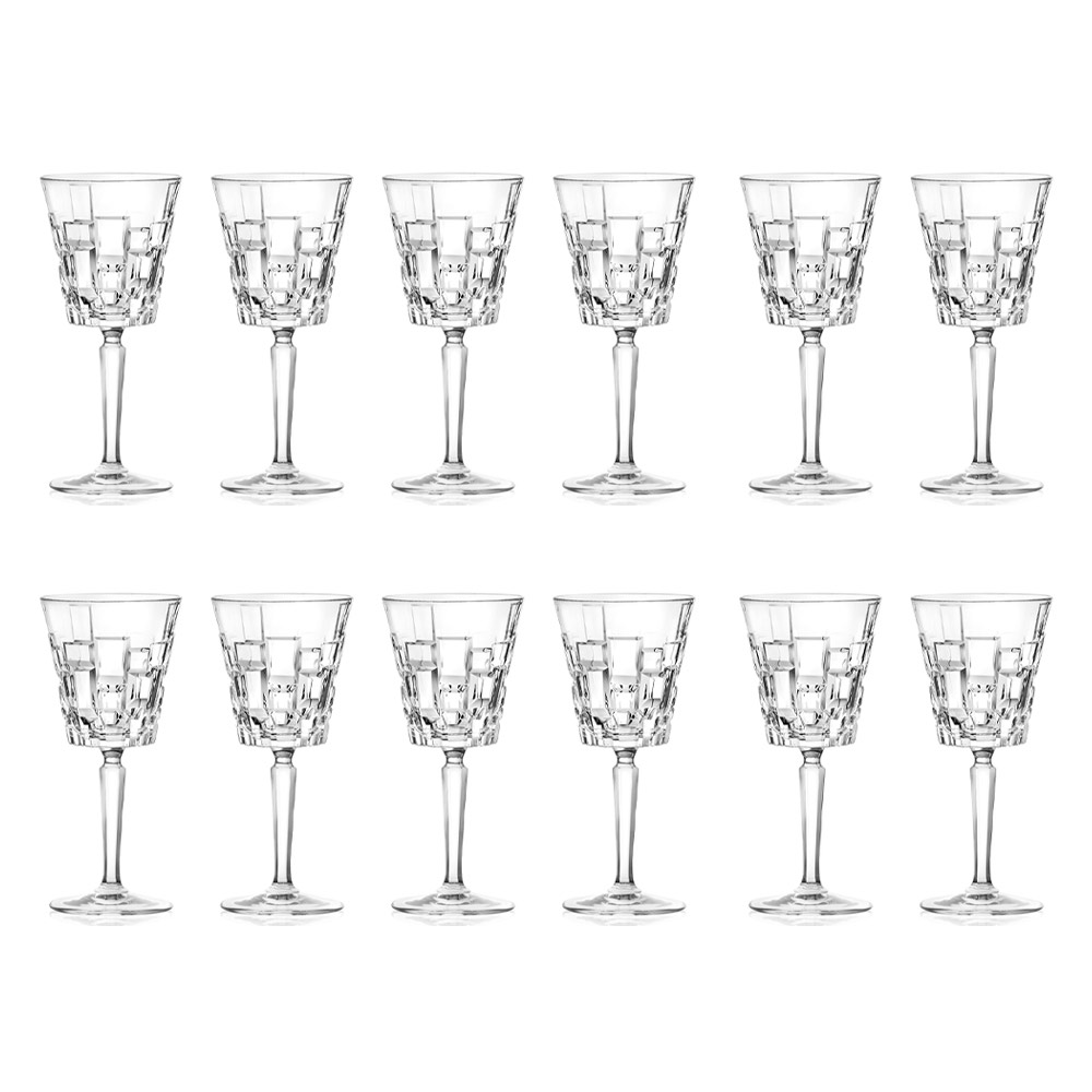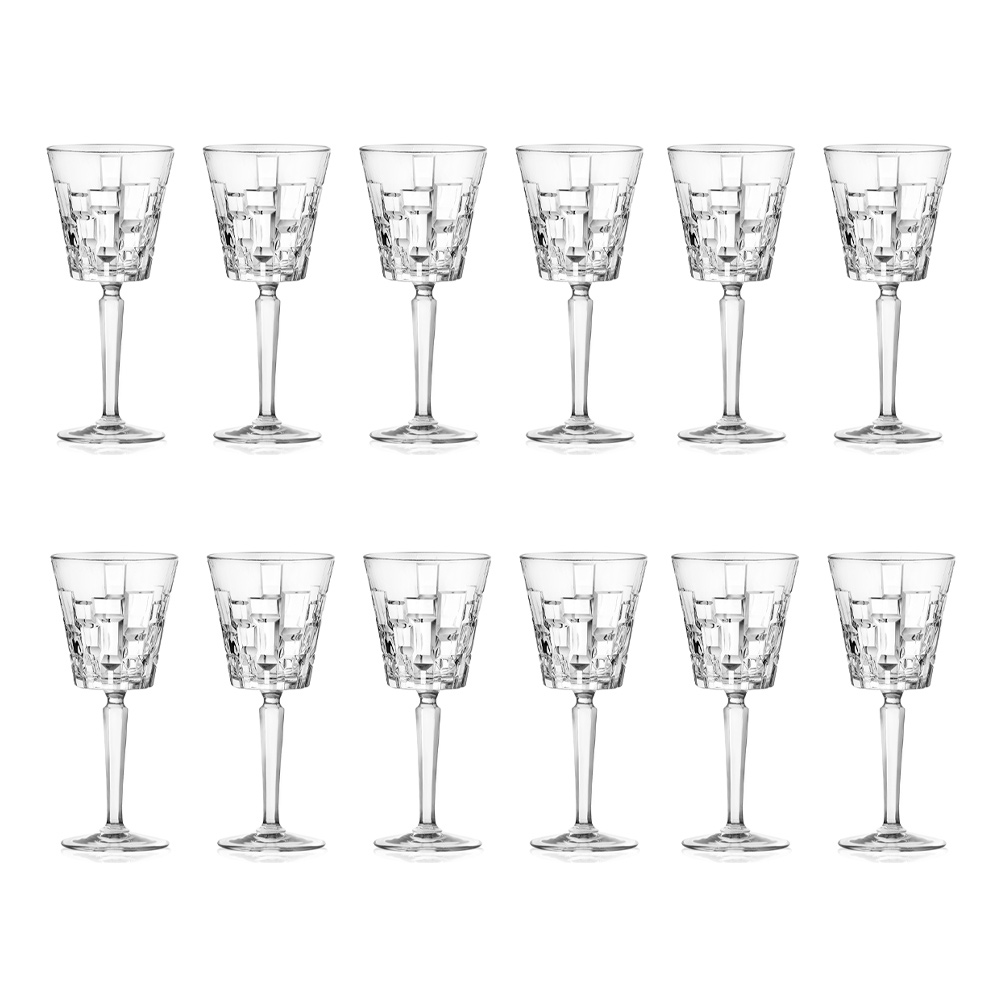Ensemble de verres à vin ou à eau en cristal écologique avec décoration de sculpture de 12 pièces fabriqué en Italie.