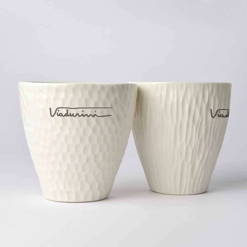 Obtenus grâce à la technique de coulée , qui permet d'obtenir des surfaces très fines afin de mettre en valeur les propriétés de la porcelaine et sa translucidité, ils sont ensuite vitrés avec du cristallin transparent à l'intérieur et soigneusement polis à l'extérieur, évoquant la sensualité et la simplicité de la beauté porcelaine, sans sacrifier sa praticité.