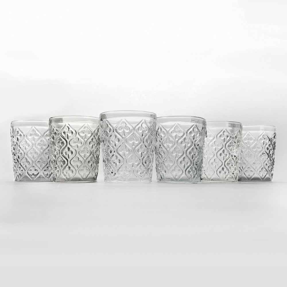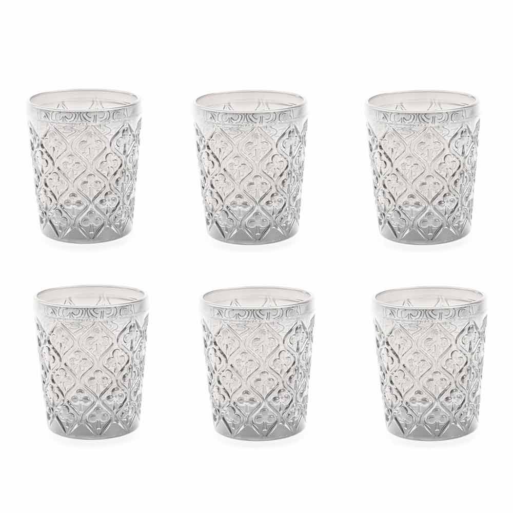 Pour ceux qui veulent créer une ambiance épicée sur la table dressée, cet ensemble de verres à eau est idéal. De délicates arabesques sont gravées sur la surface qui, avec la transparence de la matière, est unique et précieuse.
