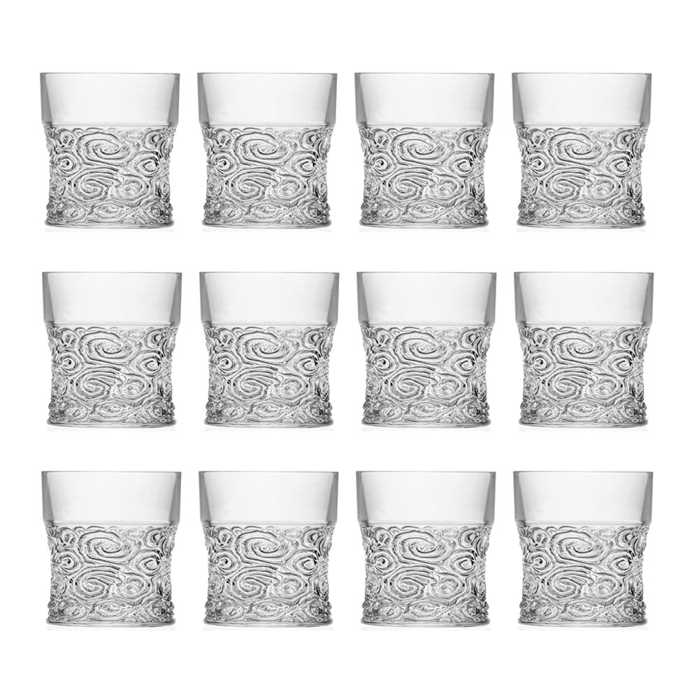 Verres doubles à l'ancienne en cristal écologique avec décoration ronde 12 pièces fabriquées en Italie.