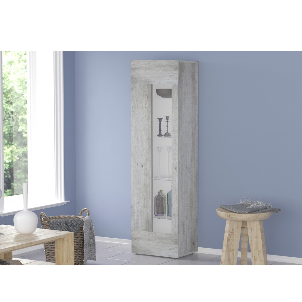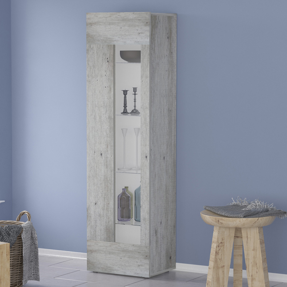 Vitrine de salon design en bois blanc, anthracite ou béton - Suzana