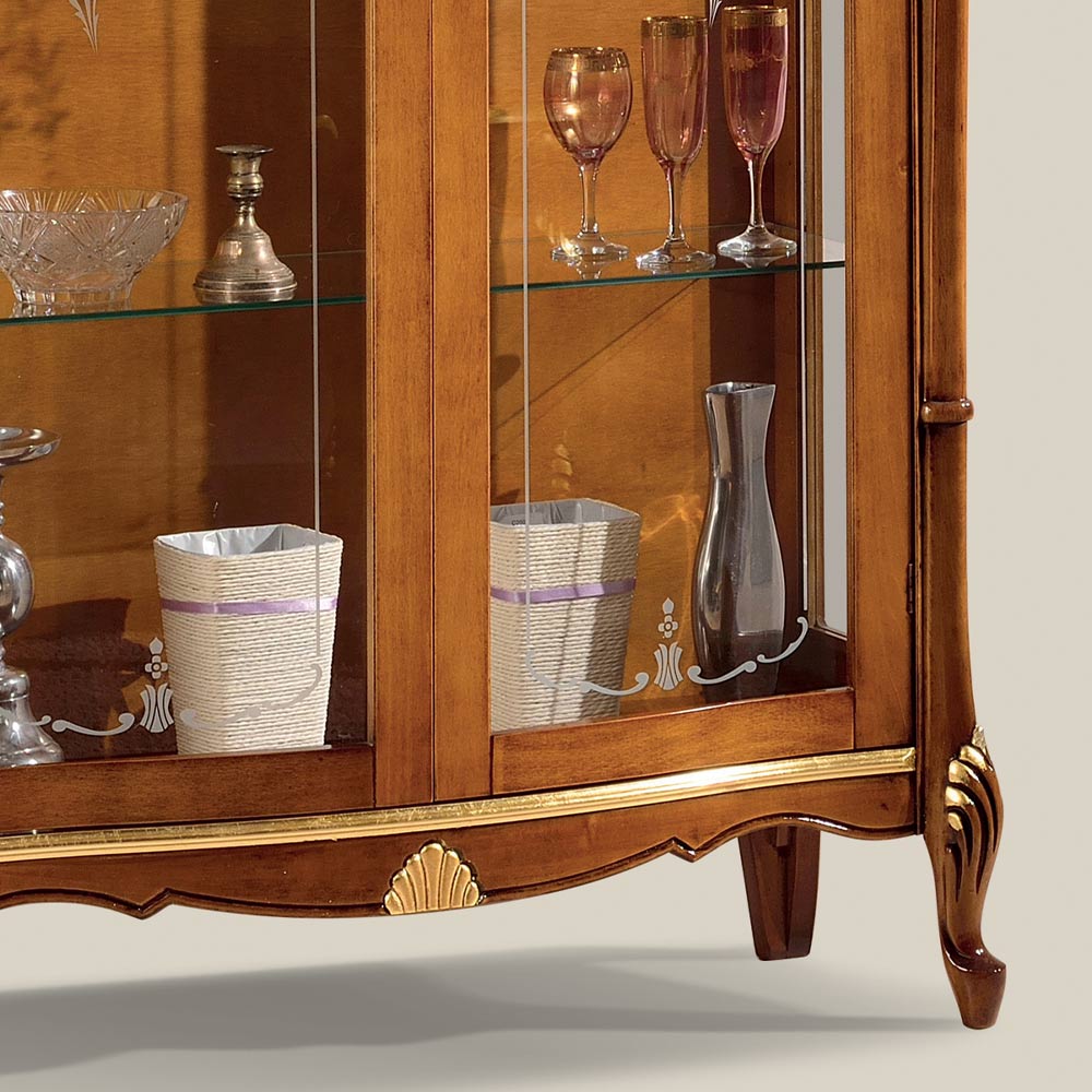 Vitrine de salon de style classique avec structure en bois avec finition noyer Bassano et or antique avec verre sérigraphié. Un complément unique et raffiné, entièrement fabriqué en Italie par des maîtres artisans qualifiés , des maîtres d'art qui finissent chaque complément avec sagesse et goût pour l'élégance. La production est réalisée en utilisant des matériaux nobles et en réalisant le travailà la main avec le plus grand soin et le professionnalisme qui distinguent les produits Made in Italy .