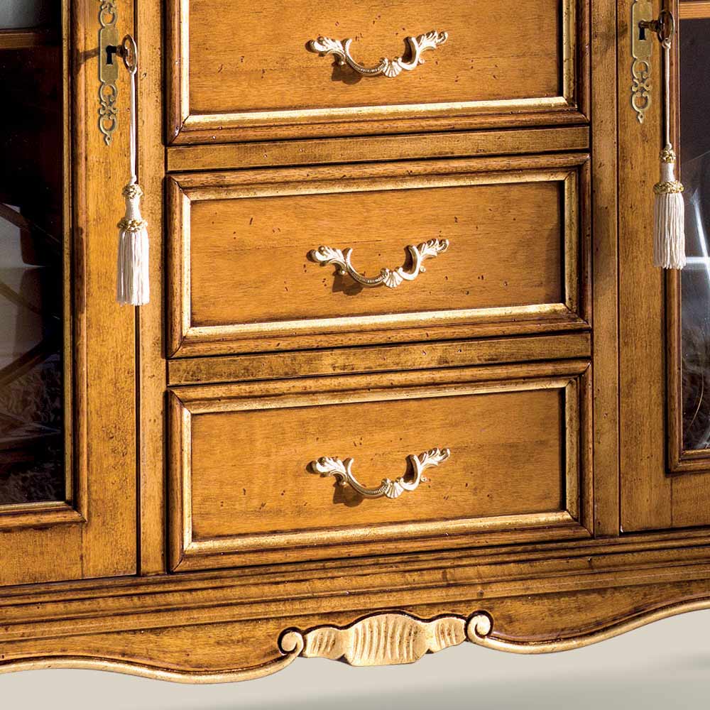 Vitrine de salon de style classique en noyer Bassano précieux et bois finition or antique , avec 2 portes vitrées et 5 tiroirs. Élégante et intemporelle, cette vitrine de style classique est idéale pour créer des décors impressionnants. Entièrement fabriqué en Italie et fabriqué à la main par des maîtres artisans qualifiés , fini avec sagesse et goût pour l'élégance. La production est réalisée en utilisant des matériaux nobles et en réalisant le travailà la main avec le plus grand soin et le professionnalisme qui distinguent les produits Made in Italy .
