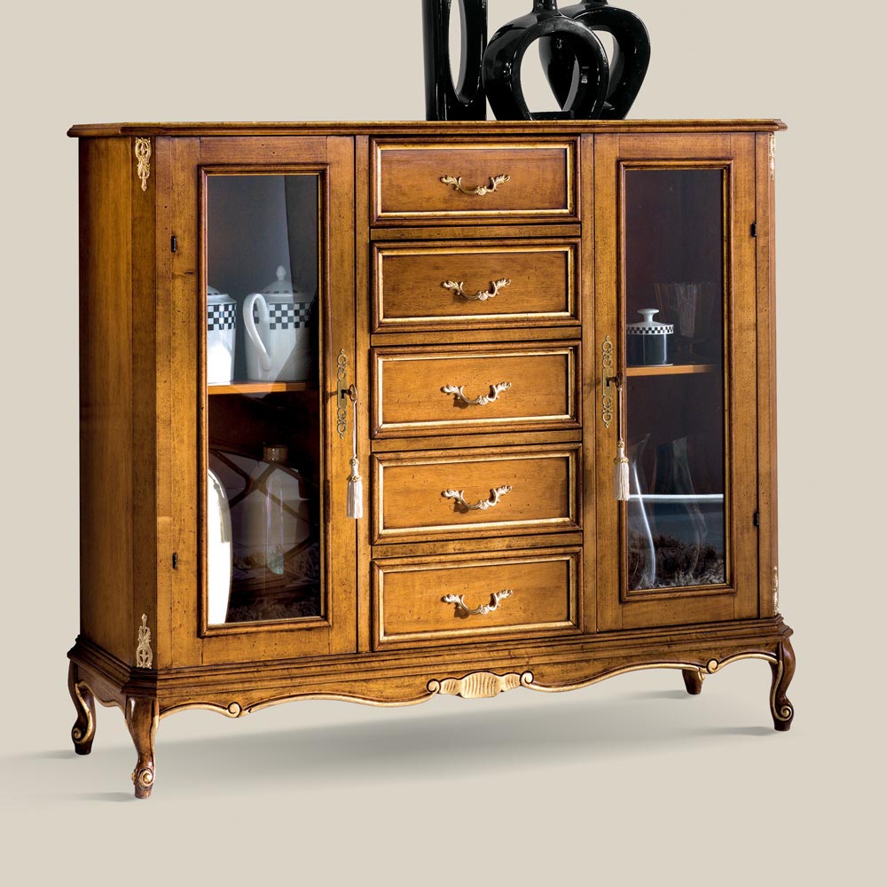 Vitrine de salon en bois avec 2 portes et 5 tiroirs Made in Italy - Richard