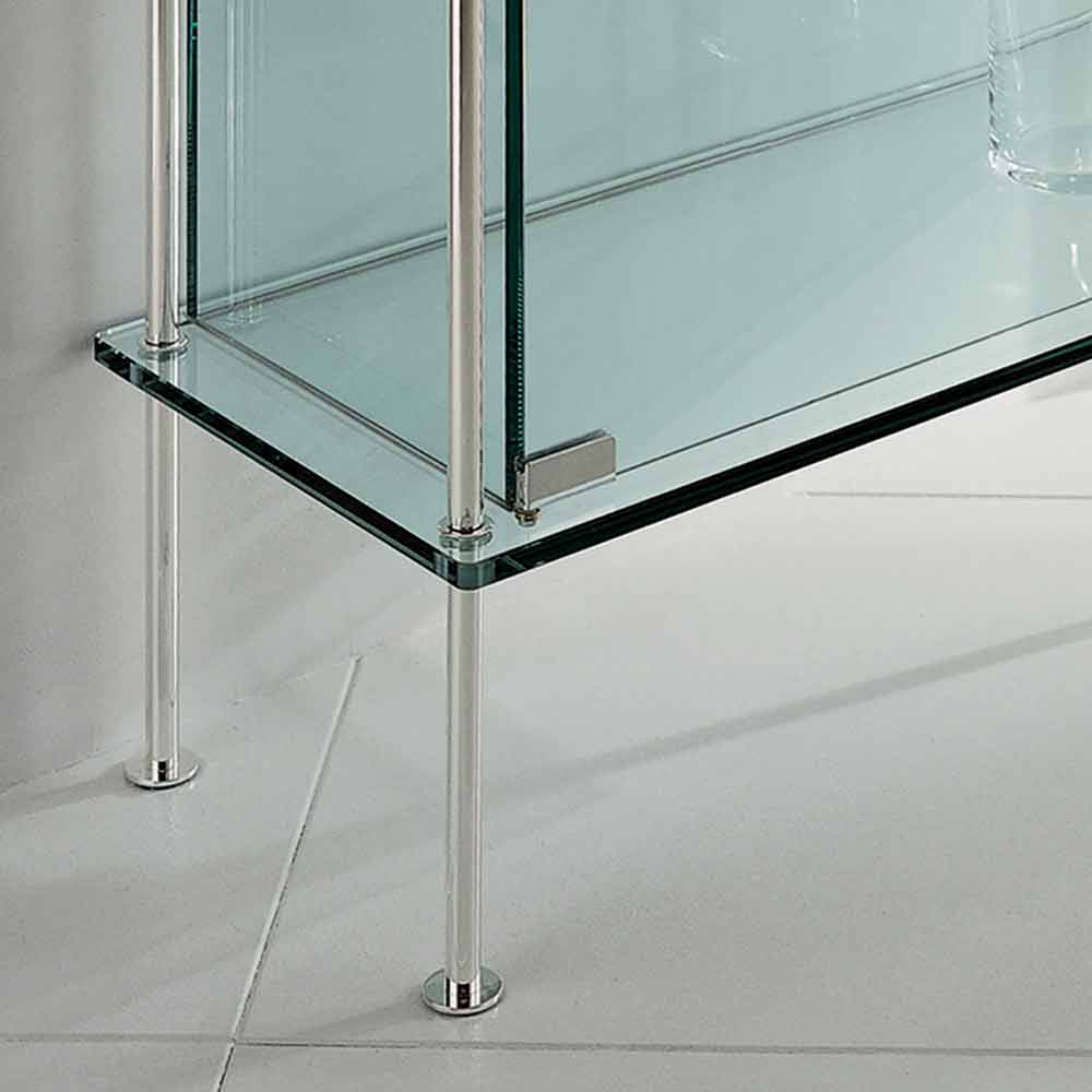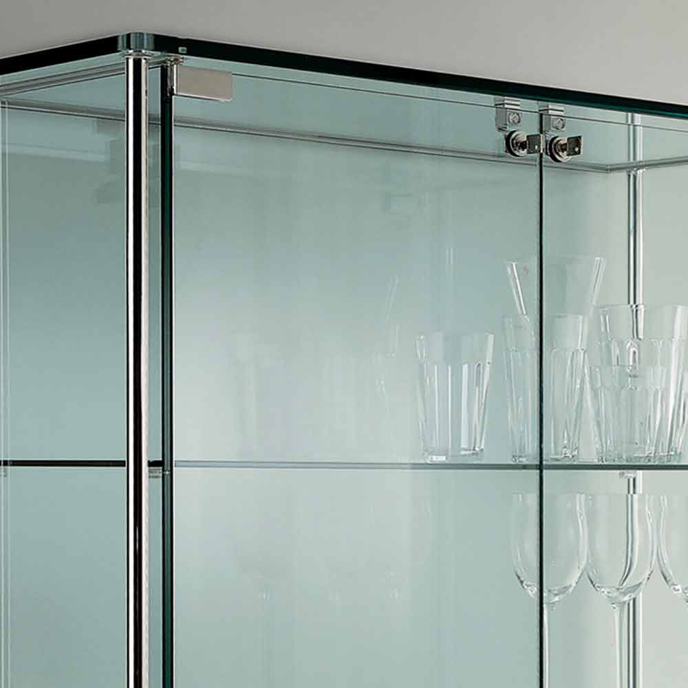 La vitrine à deux portes est entièrement réalisée en verre trempé transparent avec fermeture et supports en métal en acier inoxydable.