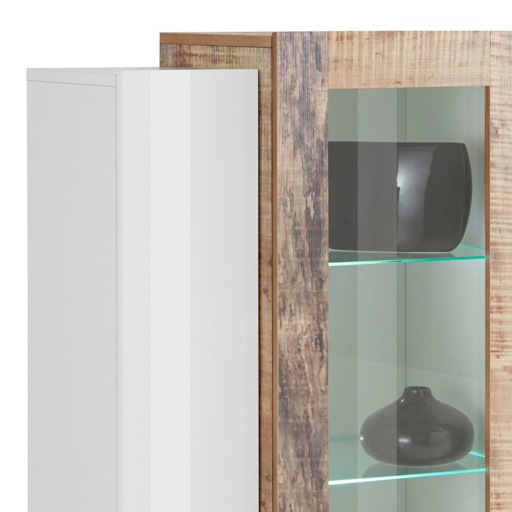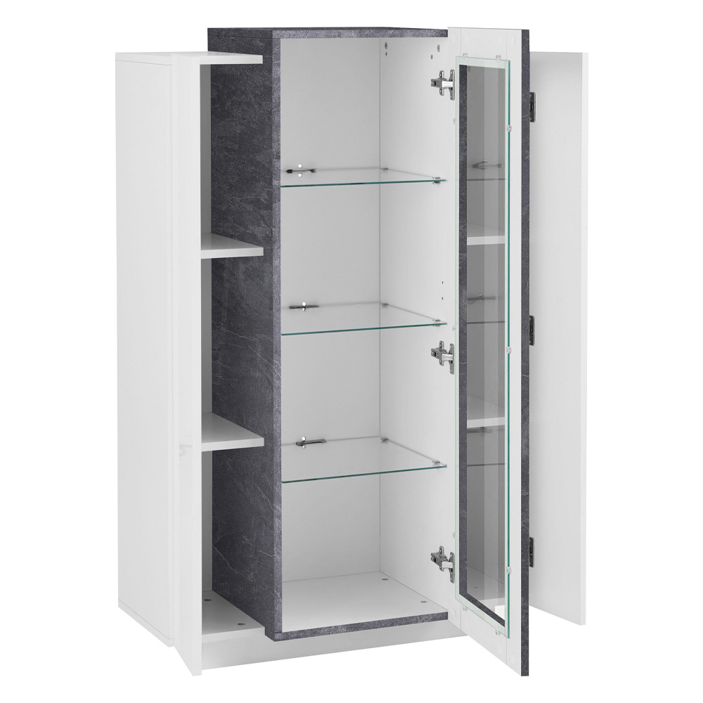 Vitrine Salon 3 Portes Blanc et Bois Anthracite, Ciment ou Érable - Thérèse