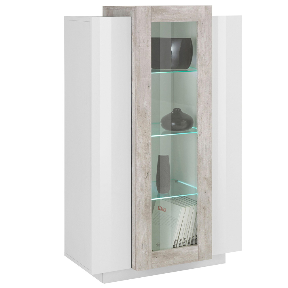 Vitrine à 3 portes en bois blanc brillant et mélamine 3 finitions avec ou sans led, fabriquée en Italie.