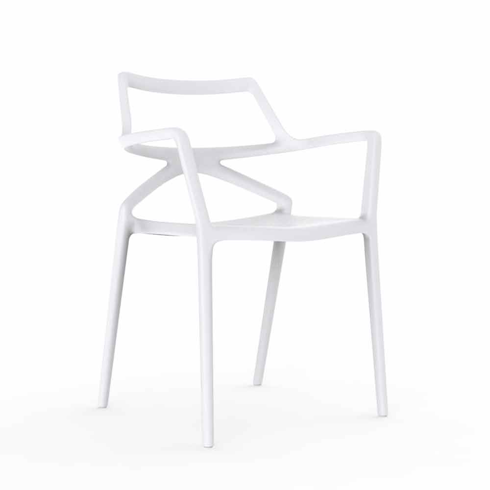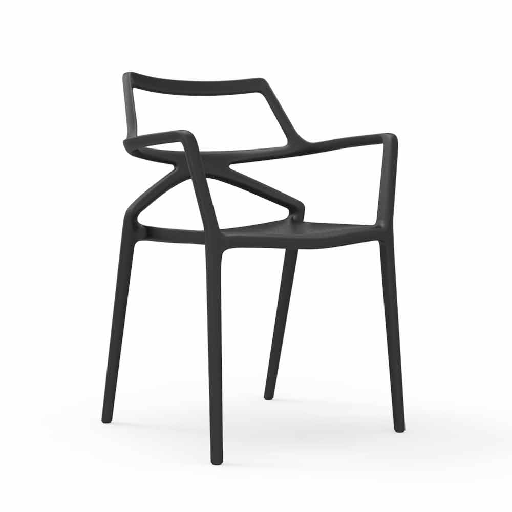 Chaise avec accoudoirs Delta by Vondom faite de polypropylène moulé par injection avec du gaz moulé à l'air et renforcé avec de la fibre de verre. Empilables.