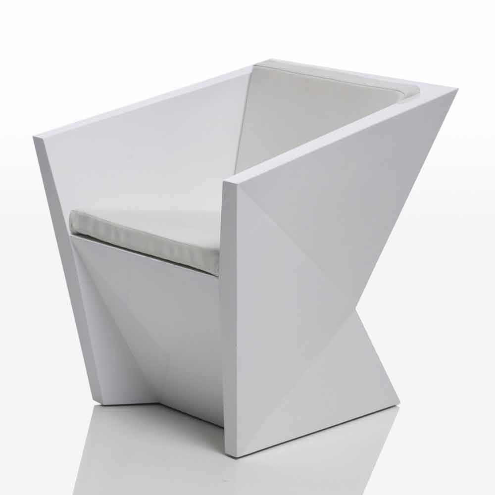 Fauteuil de jardin laqué blanc Faz by Vondom, fabriqué en résine de polyéthylène par moulage rotatif à double paroi. 100% recyclable.