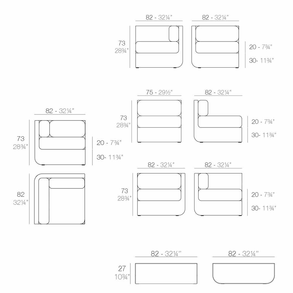 - 1 module d'angle L81.5 x P81.5 x H72 cm ;